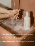 Our exfoliating hand cleanser elevates your hand washing routine with biodegradable micro-beads to gently polish as it cleans. Plant Based emollients deliver long lasting hydration to the skin. The result is clean, smooth, and nourished hands.