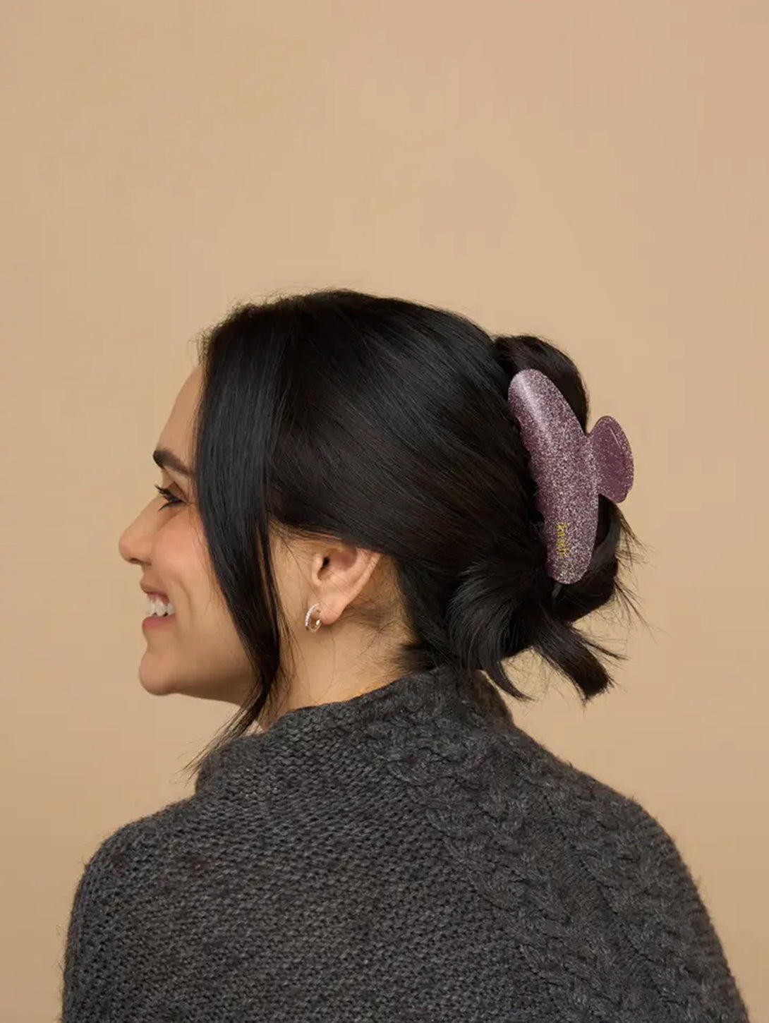Sustainable Sparkle, Everyday Style Turn up the charm with the Kitsch Recycled Plastic Claw Clip – Pink Glitter. Whether you're running errands or heading to a holiday soirée, this glitter-infused clip adds a playful pop of shimmer to your hair routine. Perfect for half-up styles or full updos, it holds hair securely while making a statement. Add a touch of glitz to your style with this sparkly pink claw clip, perfect for brightening up your everyday look. Create an easy half-up do or clip your hair all the way up and back with effortless flair -Ideal for everything from coffee runs to holiday celebrations. Crafted with recycled glitter-infused acrylic—because sustainability should always sparkle -Great for most hair types.
