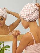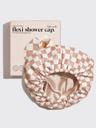Satin Lined Flexi Shower Cap - Terracotta Checker