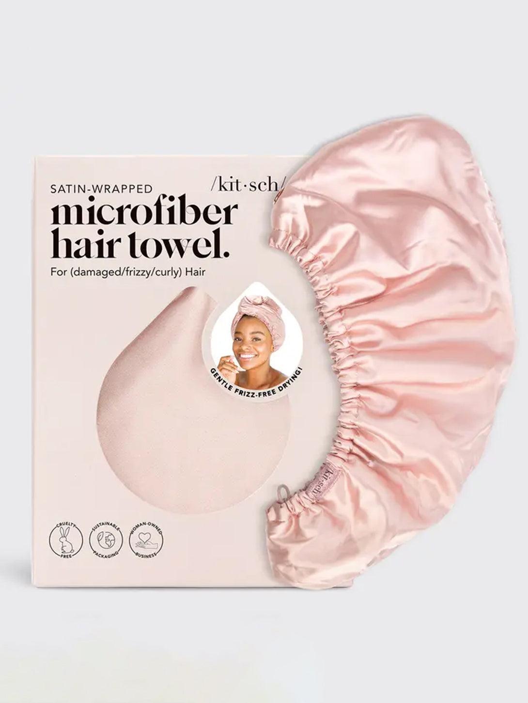 Cut hair drying time in half! Soft microfiber material is gentle on all hair types. Helps tame frizz & reduce hair breakage. Stretch elastic trim creates an easy pocket for all hair lengths. Gently wicks away excess water without stripping your hair of natural oils 100% vegan satin preserves curls & waves. Silky smooth satin & quick-drying microfiber wrap protects & dries wet hair. Gently wicks away excess water without stripping your hair of its natural oils & conditioners. Satin helps reduce frizz while protecting your hair from split ends & breakage. Super absorbent microfiber layer helps to dry your hair in a fraction of the time 100% vegan satin preserves smooth curls & waves. Helps reduce heat drying time for healthier hair Stretch elastic trim creates an easy pocket to accommodate most hair lengths For most hair types, especially naturally dry hair textures.