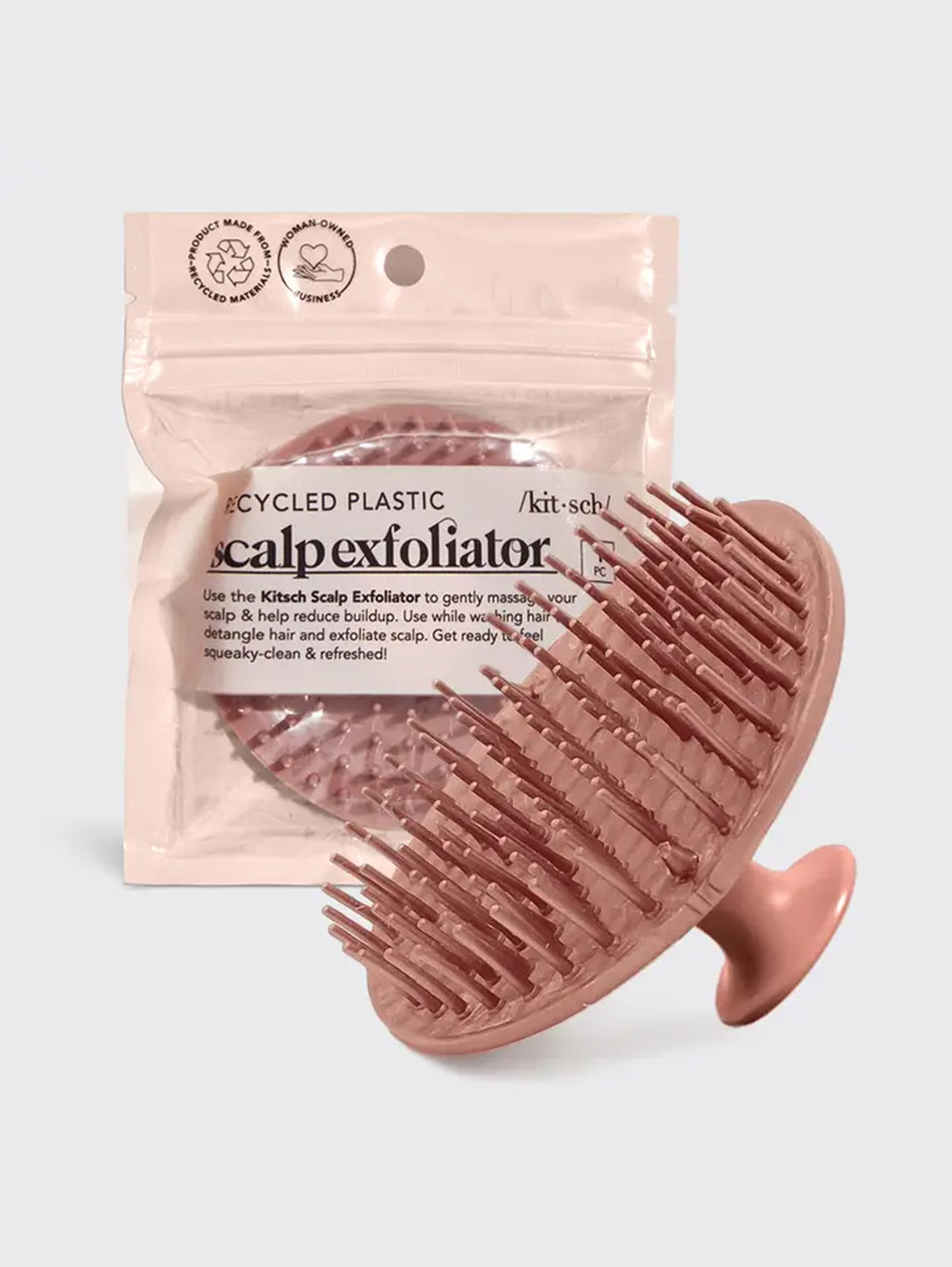 Use the Kitsch Scalp Exfoliator to gently massage your scalp & help reduce buildup. Use while washing hair to detangle hair and exfoliate scalp. Get ready to feel squeaky-clean & refreshed! Note - 1 scalp exfoliator included. Soft, flexible bristles for a gentle scalp massage. Help reduce buildup. Can be used wet or dry, great for distributing shampoo or styling products through hair. Suitable for most hair types & textures. Made with recycled materials, this must-have hair tool is kind on your scalp & the environment!