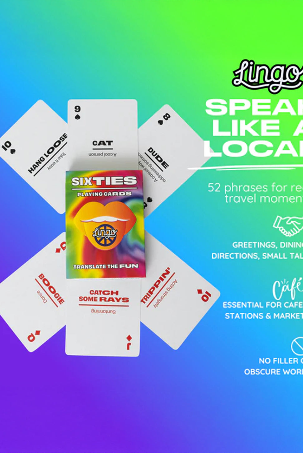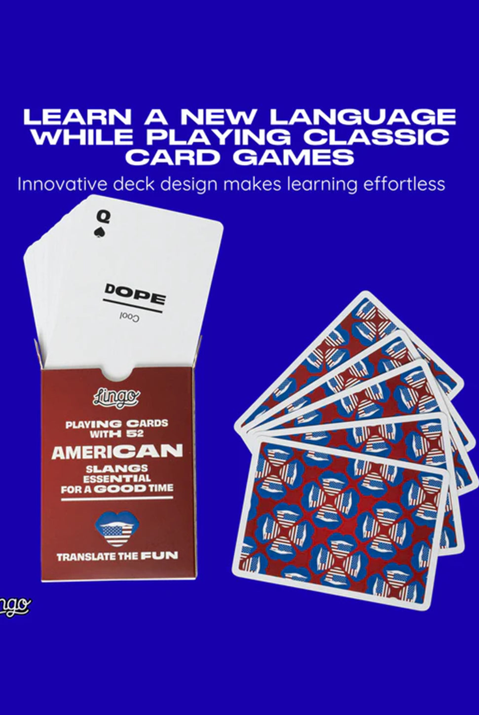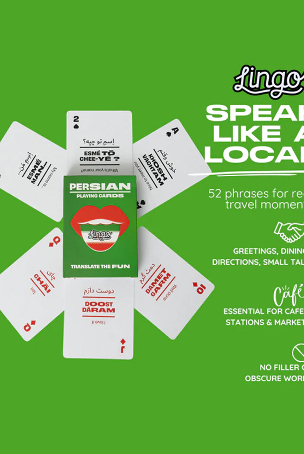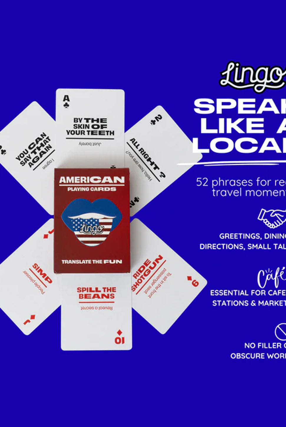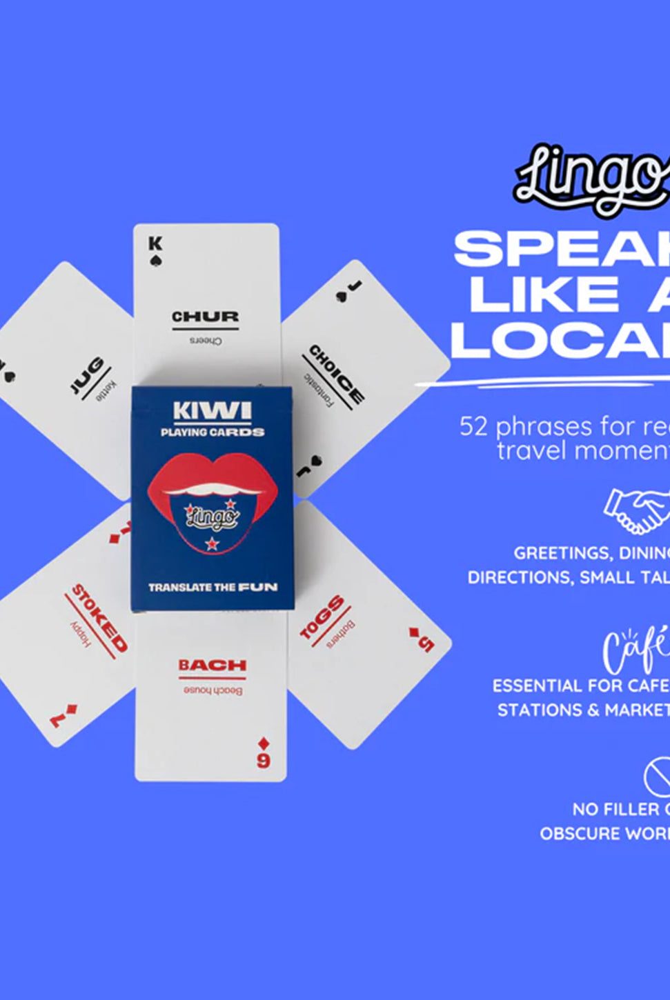 Headquartered in Abbey, Western Australia, the Lingo Cards brand offers uniquely-themed, premium quality playing cards with the world’s most popular languages and slangs. Featuring most commonly-used phrases essential for travel accompanied by phonetic pronunciations, our playing cards offer a fun and easy way to learn a new language.