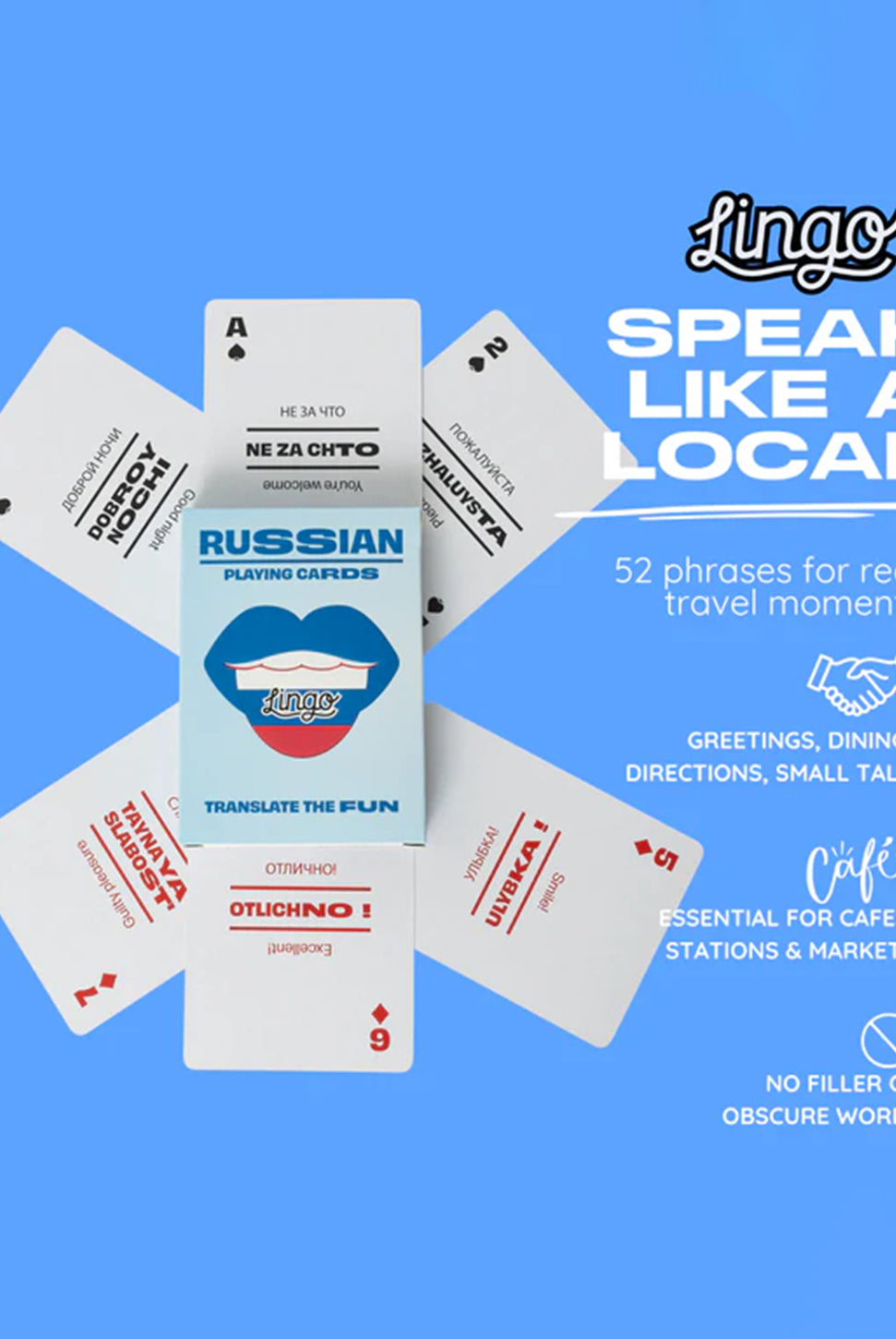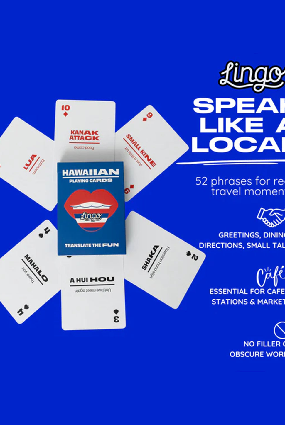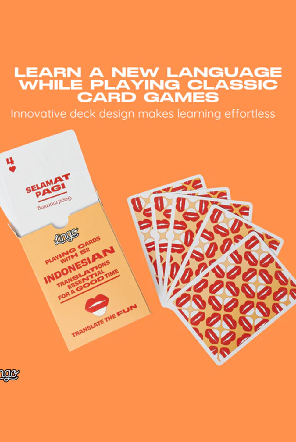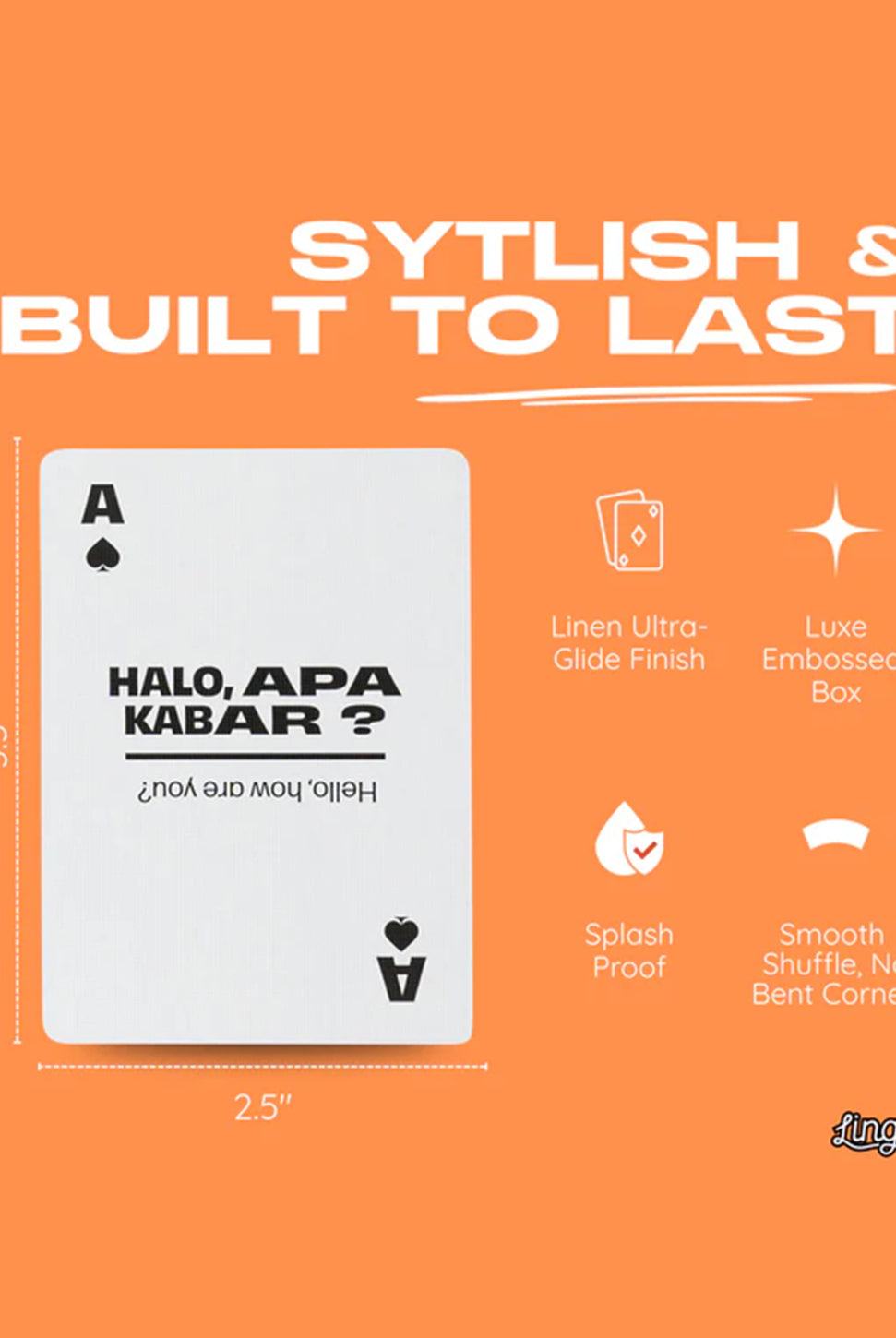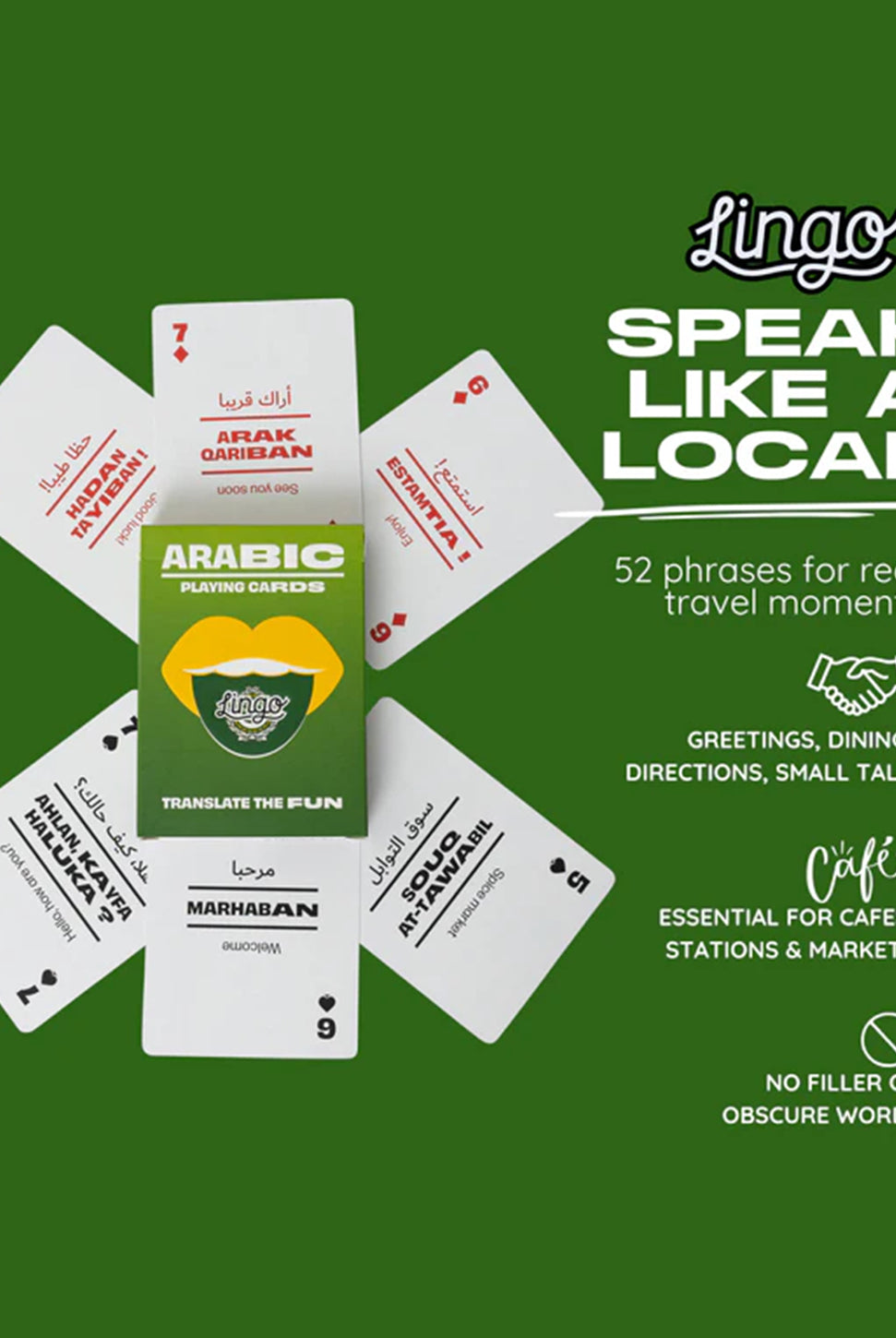 Headquartered in Abbey, Western Australia, the Lingo Cards brand offers uniquely-themed, premium quality playing cards with the world’s most popular languages and slangs. Featuring most commonly-used phrases essential for travel accompanied by phonetic pronunciations, our playing cards offer a fun and easy way to learn a new language.