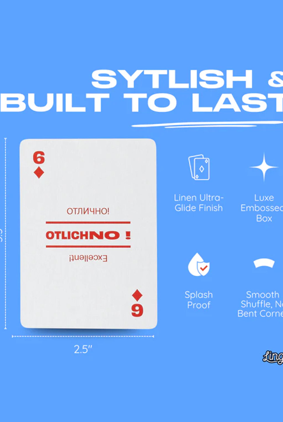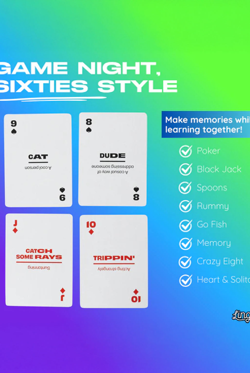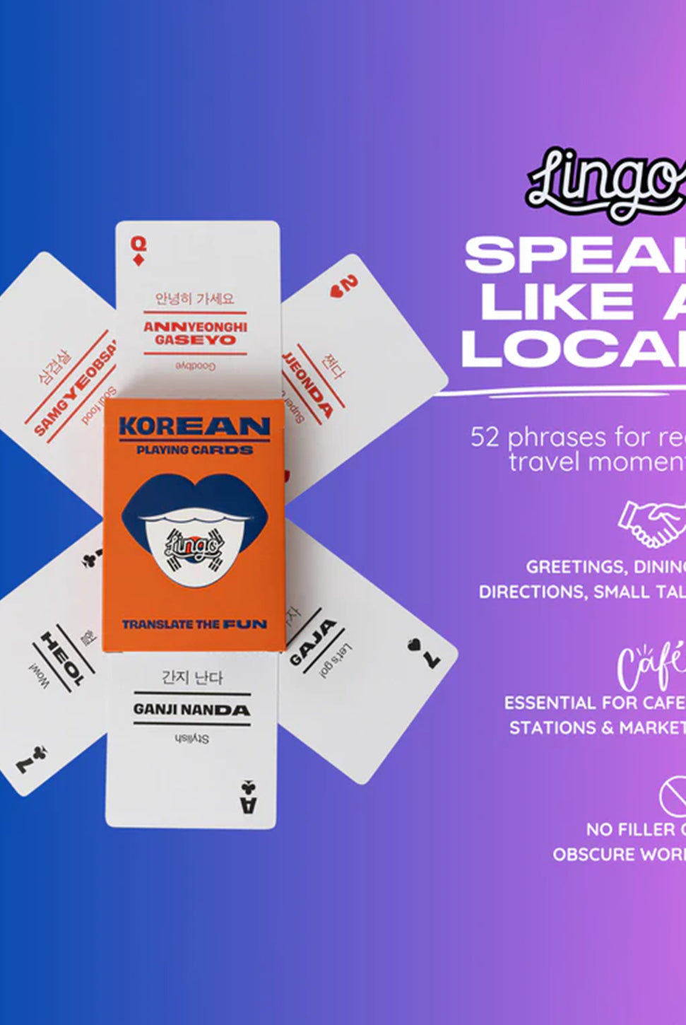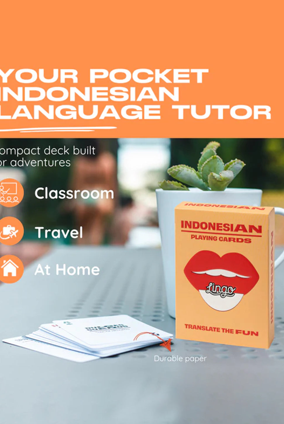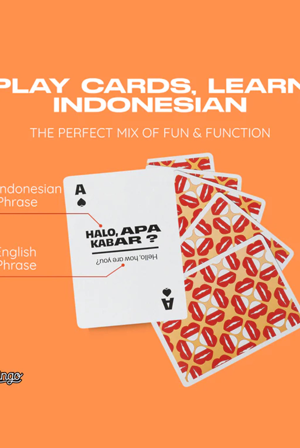 Headquartered in Abbey, Western Australia, the Lingo Cards brand offers uniquely-themed, premium quality playing cards with the world’s most popular languages and slangs. Featuring most commonly-used phrases essential for travel accompanied by phonetic pronunciations, our playing cards offer a fun and easy way to learn a new language.