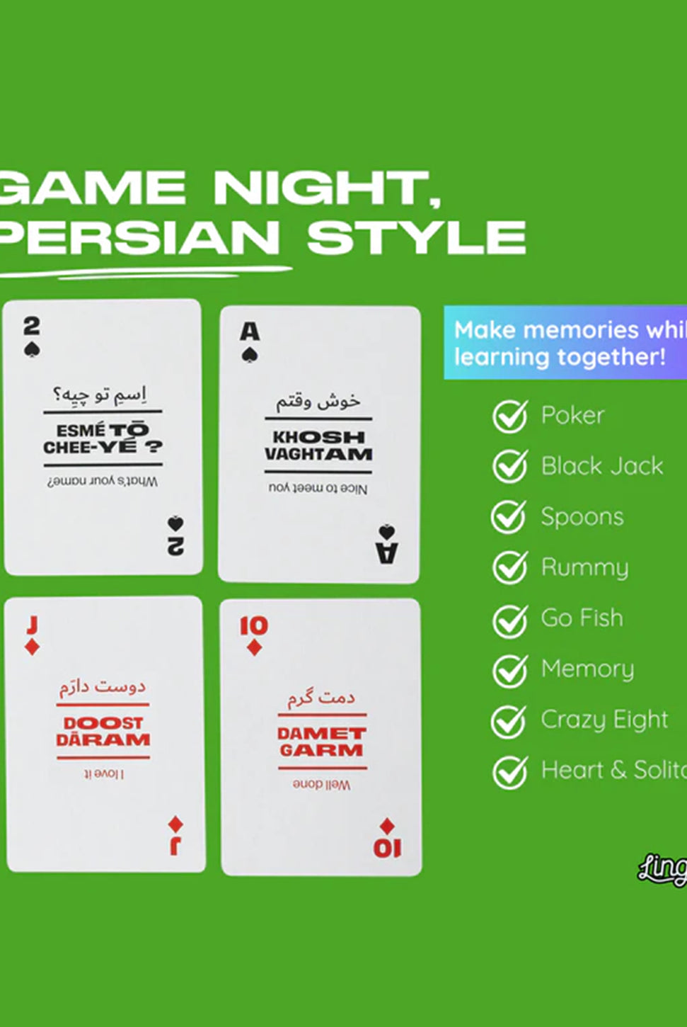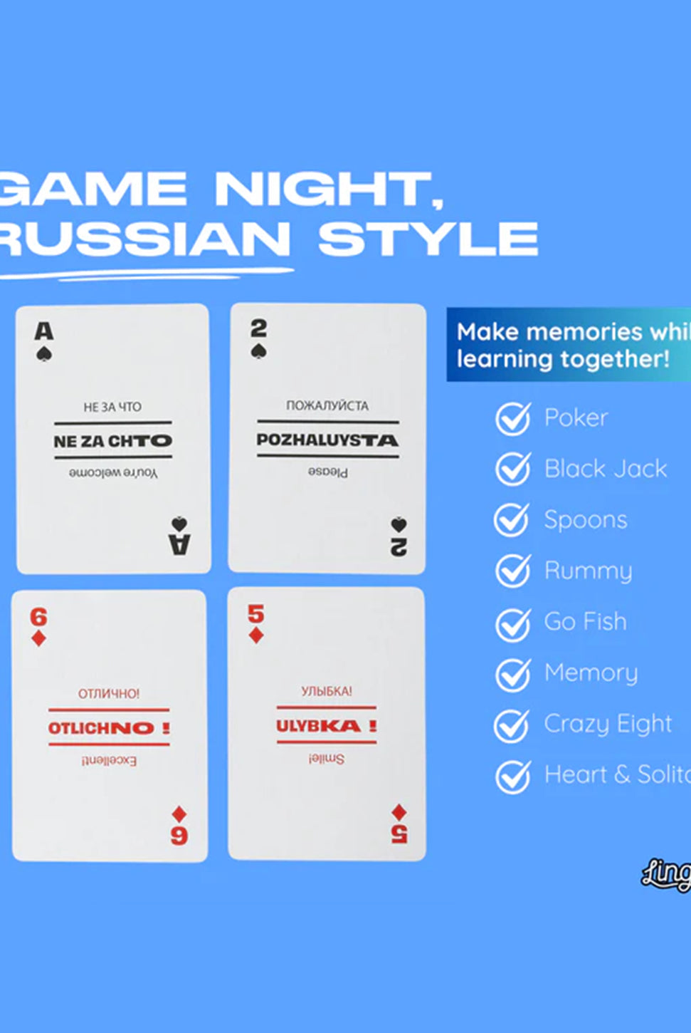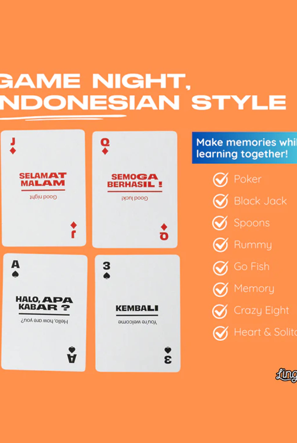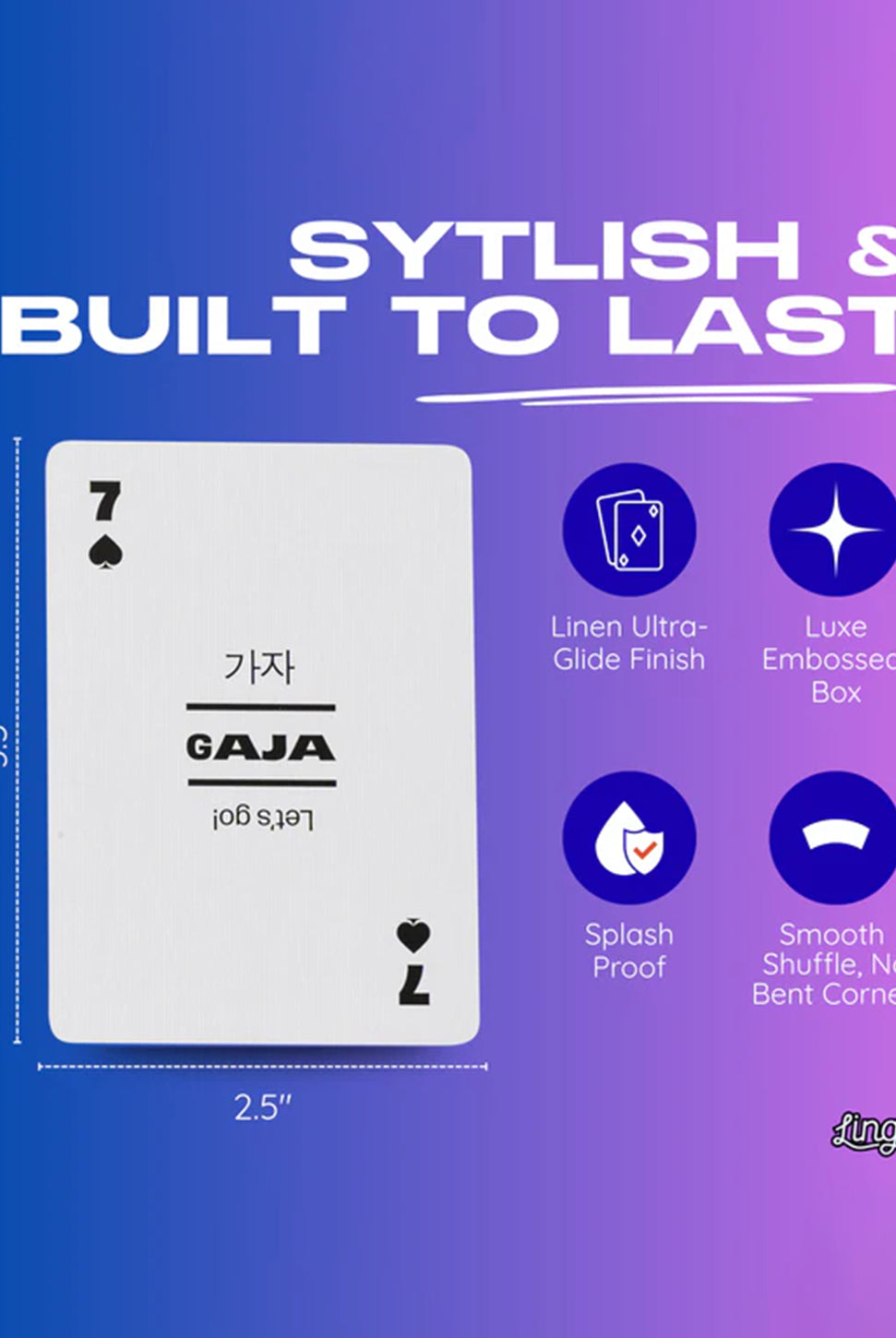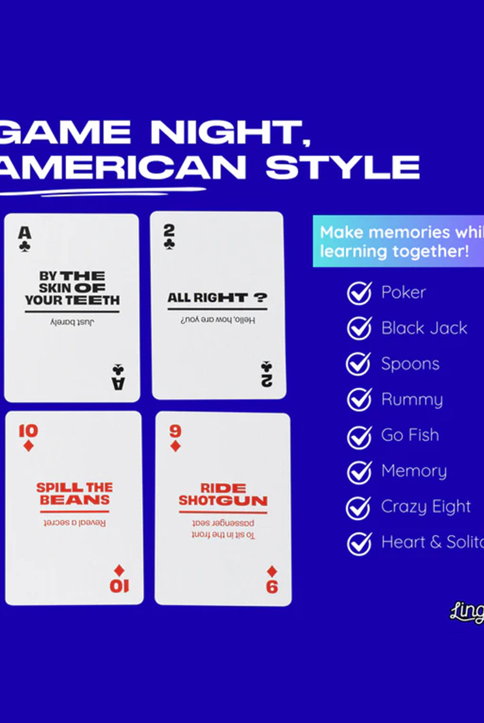 Headquartered in Abbey, Western Australia, the Lingo Cards brand offers uniquely-themed, premium quality playing cards with the world’s most popular languages and slangs. Featuring most commonly-used phrases essential for travel accompanied by phonetic pronunciations, our playing cards offer a fun and easy way to learn a new language.