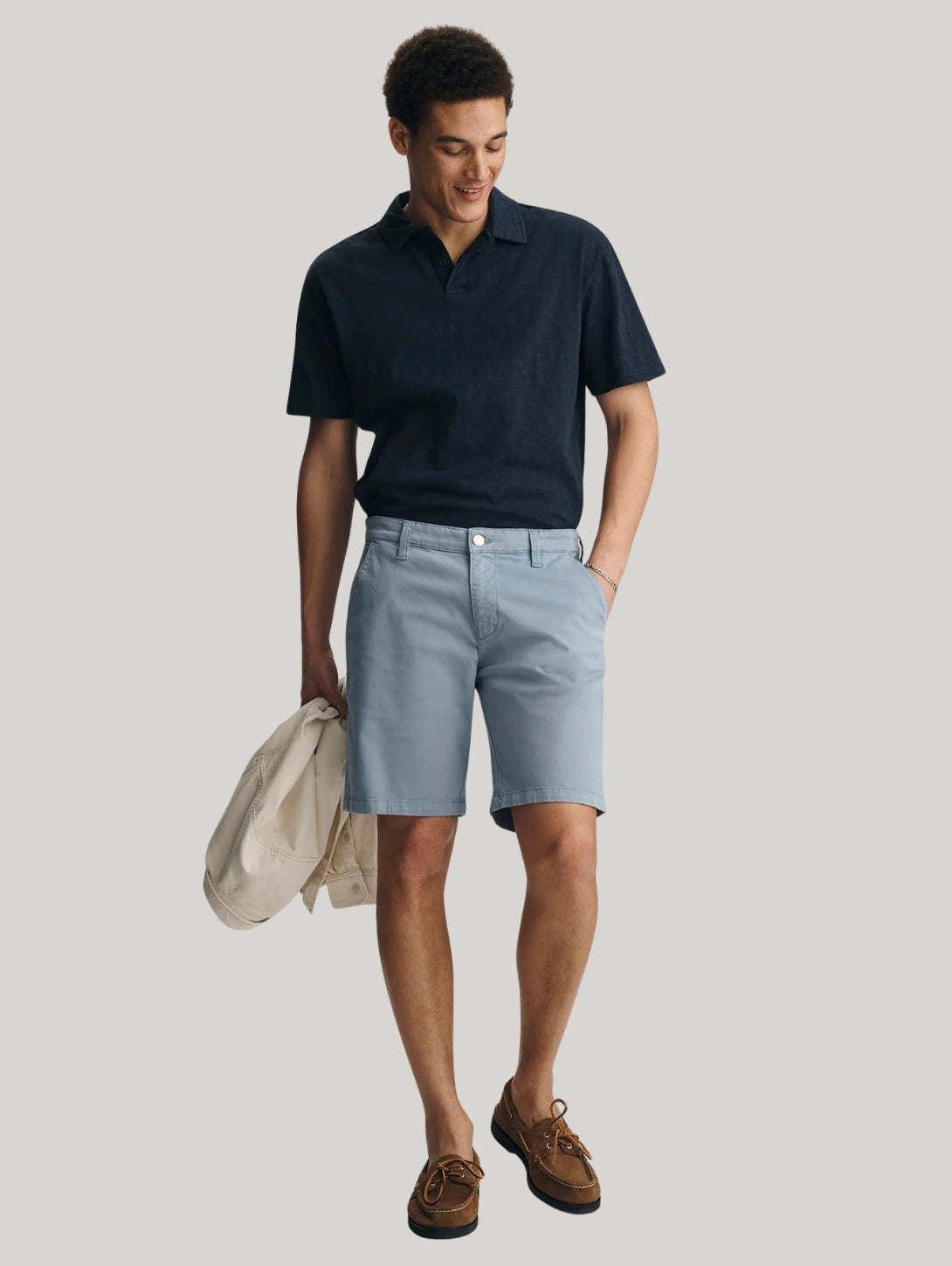 Our ever-popular Jacob short is a mid-rise, slim fit with a streamlined shape and classic trouser pocket styling. Our twill fabric is medium weight with a moderate amount of stretch which features a slightly peached texture that's soft to the touch. This versatile knit has an easy-wearing drape that always feels comfortable and timeless.