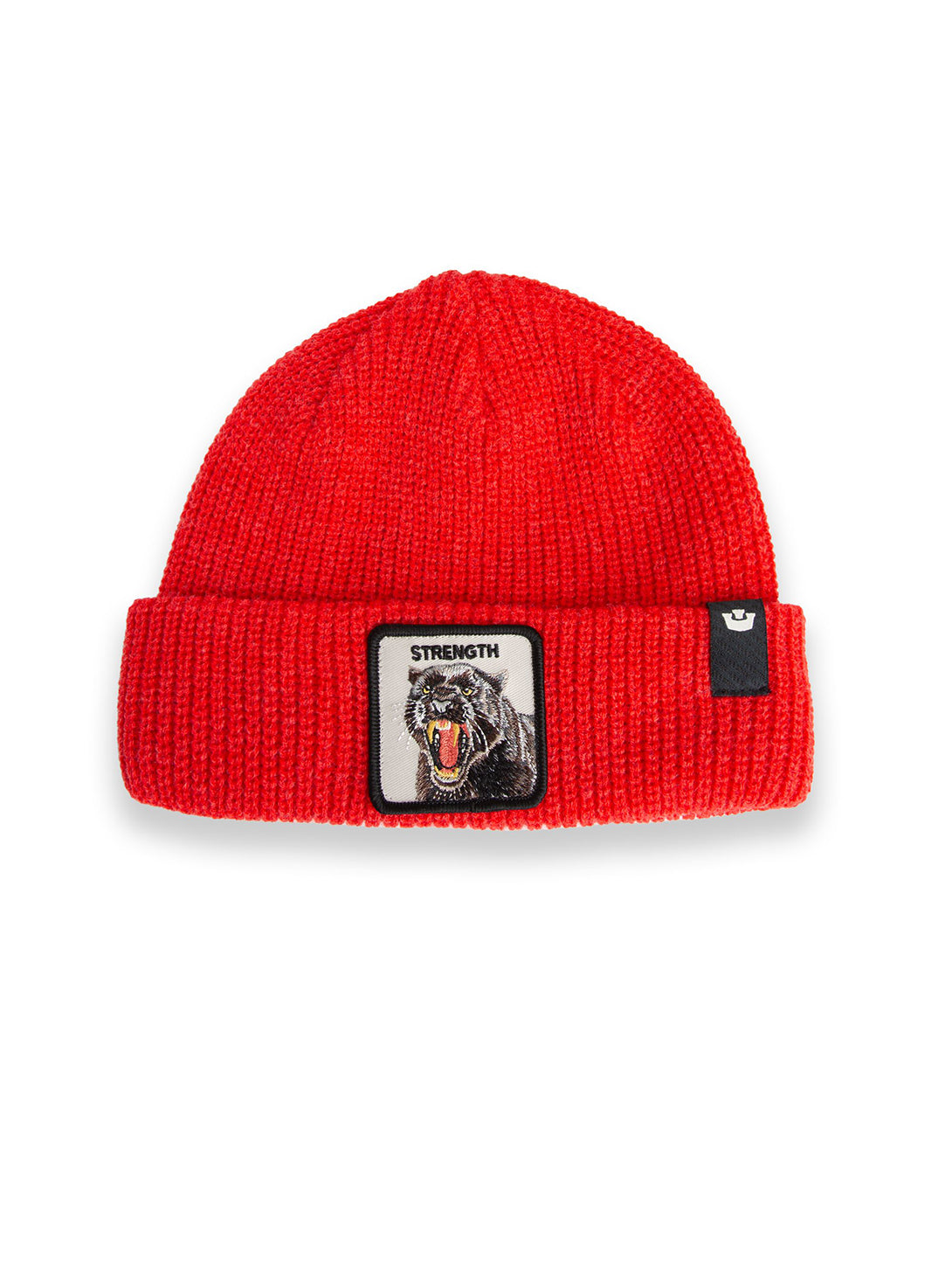 Bright red knit built like armor, finished with a roaring panther patch. Rugged warmth with raw power stitched in—this beanie’s got muscle for days.