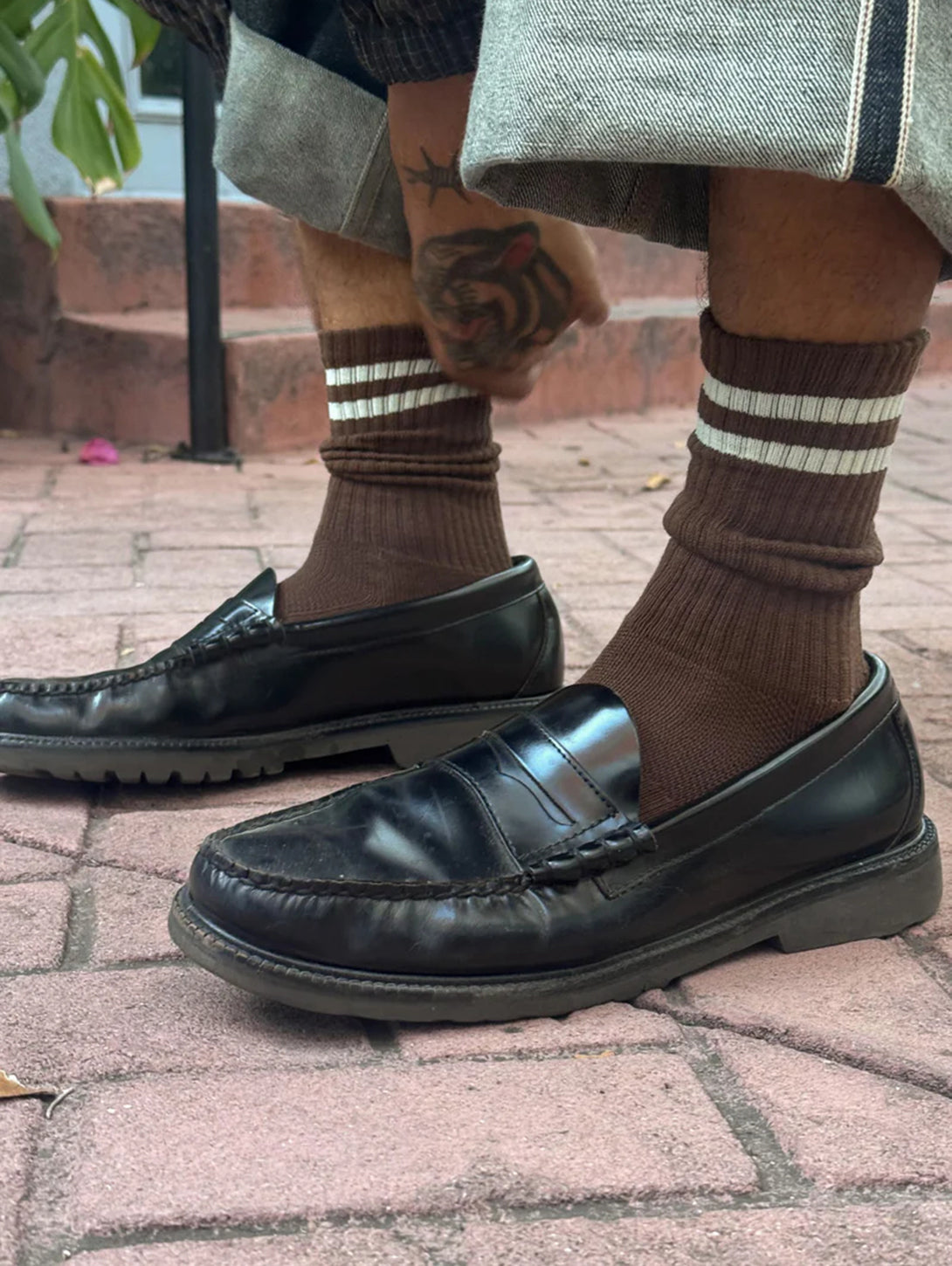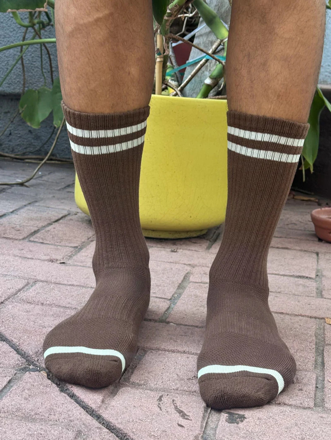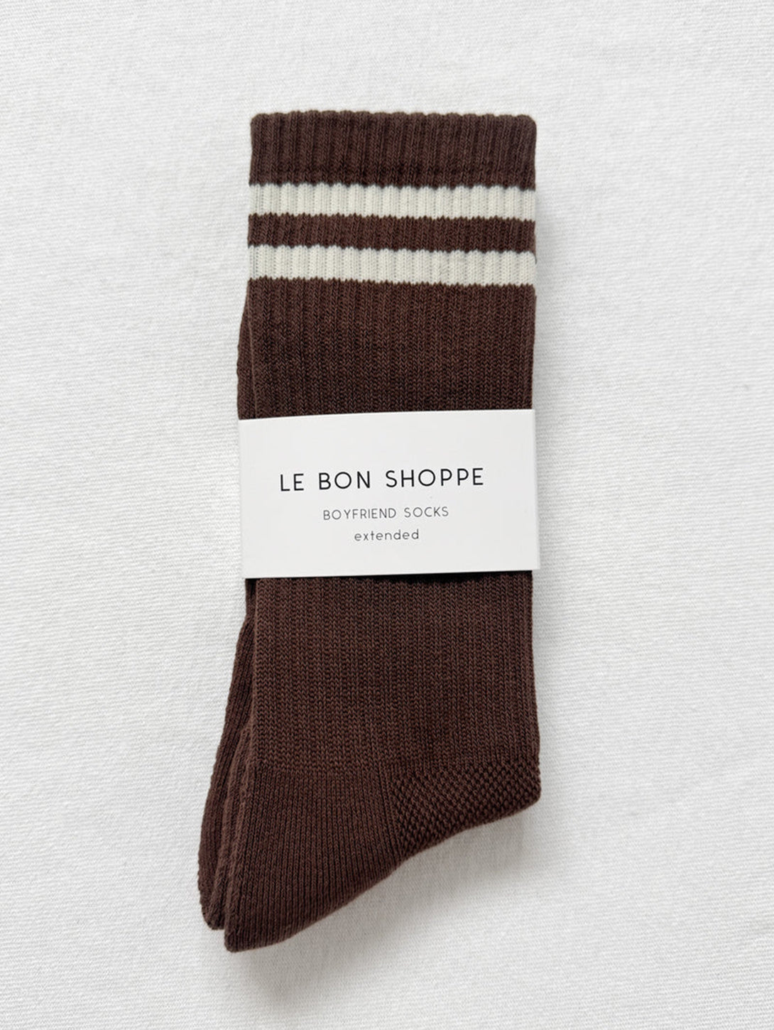 Due to popular demand LBS created the Boyfriend Socks in extended sizing, which is unisex and men-friendly! They maintain the same design as our bestseller and signature style, Boyfriend Socks, with a slightly bigger foot and longer leg. Their classic, vintage-sporty vibe can be styled with all of any daytime look or worn as the perfect lounge sock to keep your feet comfy at all times.