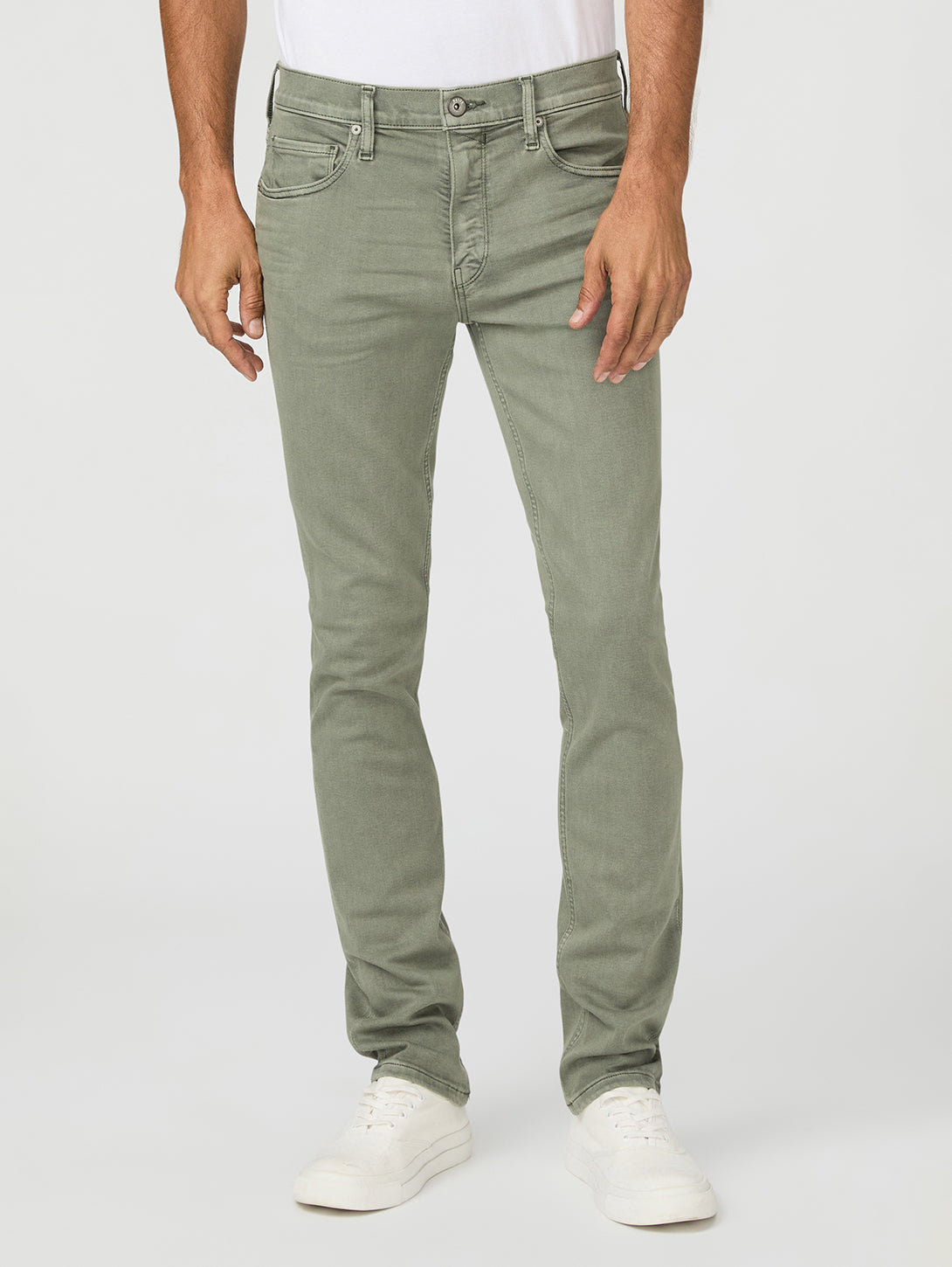 Lennox is our signature slim fit, fitted through the thigh and tapers from the knee to the leg opening. In a pigment-dyed light green hue with slight brushing on the face for added texture, this pair is cut from TRANSCEND, the world’s most famous denim that revolutionized style and comfort.