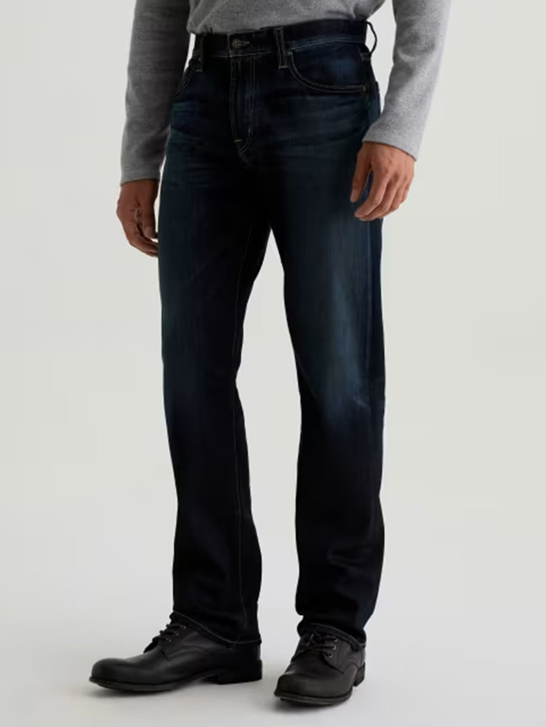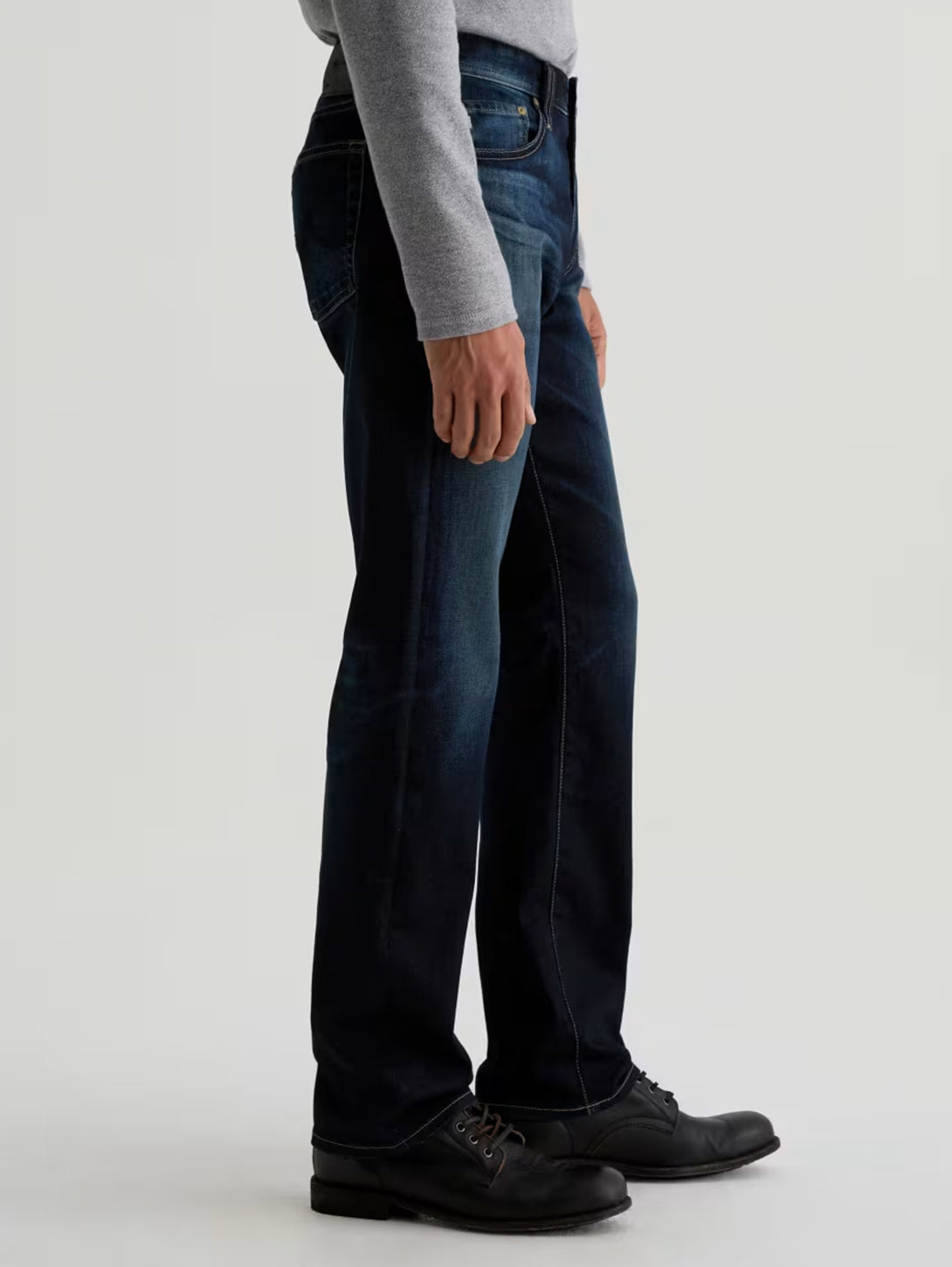 Protégé is crafted in New Union Dark Denim from the renowned Kaihara Mill in Japan. A classic straight jean designed in 4 Years Diaz, our dark indigo wash, finished to emulate 4 years of AG-ed™ wear through highs and lows, whiskering, and light fading.