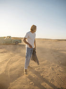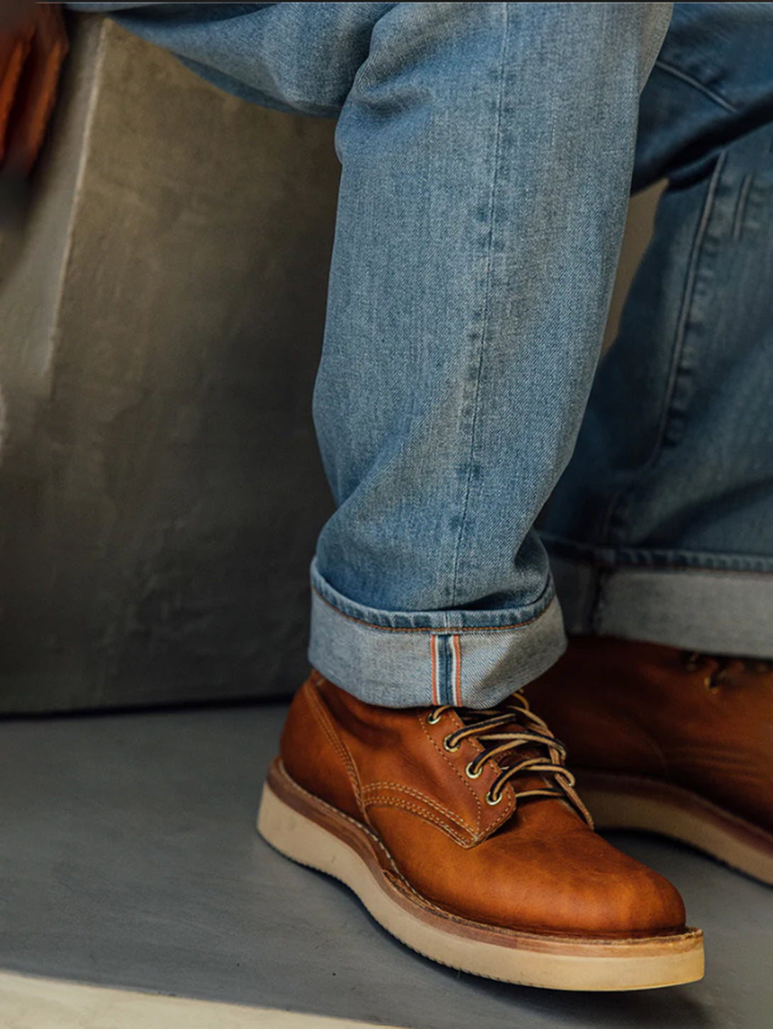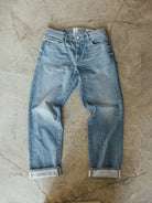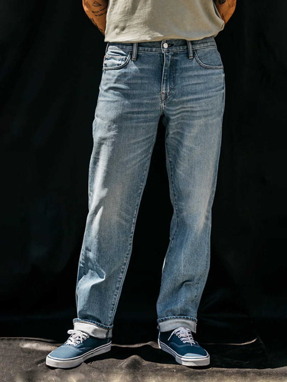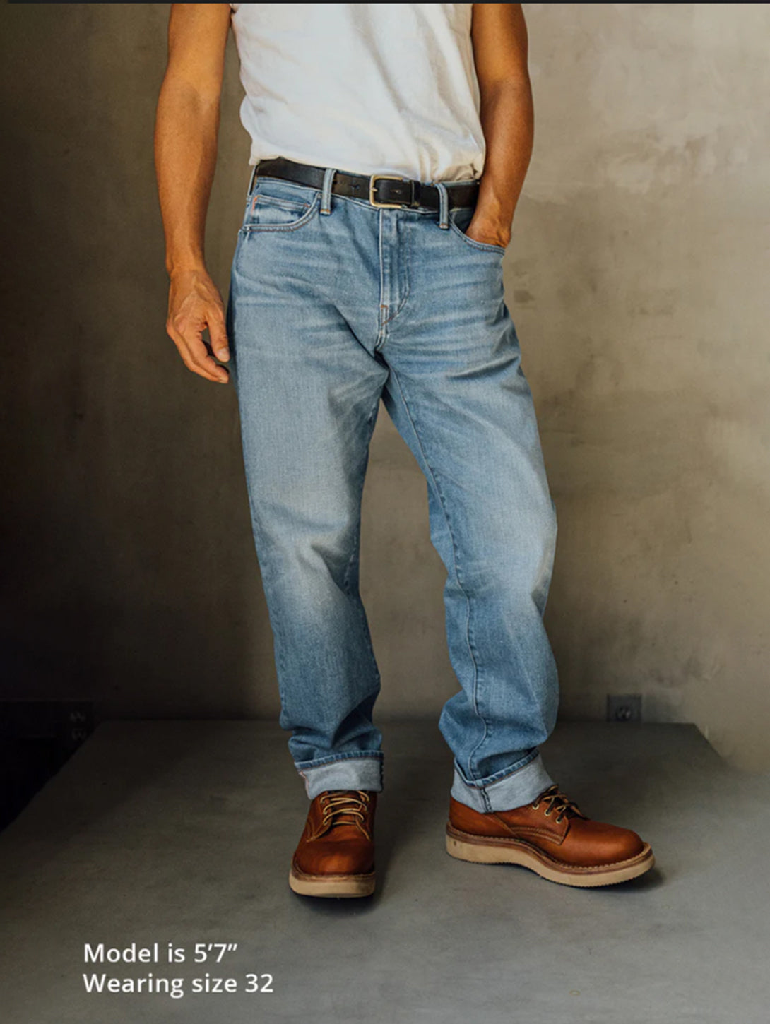 Classic Straight fit, medium rise. Vintage fade indigo Japanese 14oz 4-Way Stretch Selvedge, mid-rise, zip fly, a premium leather patch, and custom-branded hardware. Just like a pair of old trustworthy jeans handed down from your dad, this pair emulates years of wear. It has lived through it all and has the fades to tell the story. The slightly tinted fades authentically replicate the real look of a pair that is heavily worn but well-kept. The 14oz 4-Way Stretch will give any vintage denim a run for its money in the comfort department while being just as durable.