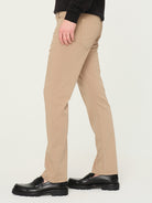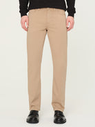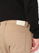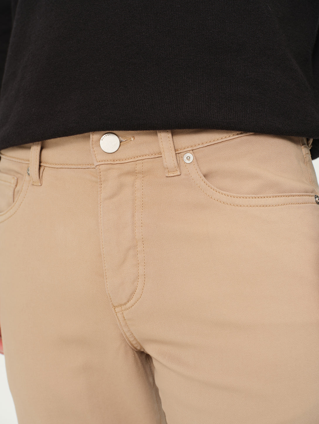 Russell is our best-selling slim straight fit. Relaxed through the seat and thigh, it is straight from the knee towards the ankle. Sandstone is a light khaki hue. It features matte silver hardware, tonal stitching, a clean hem and an ecru back patch.