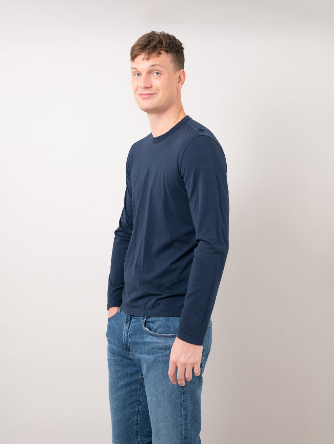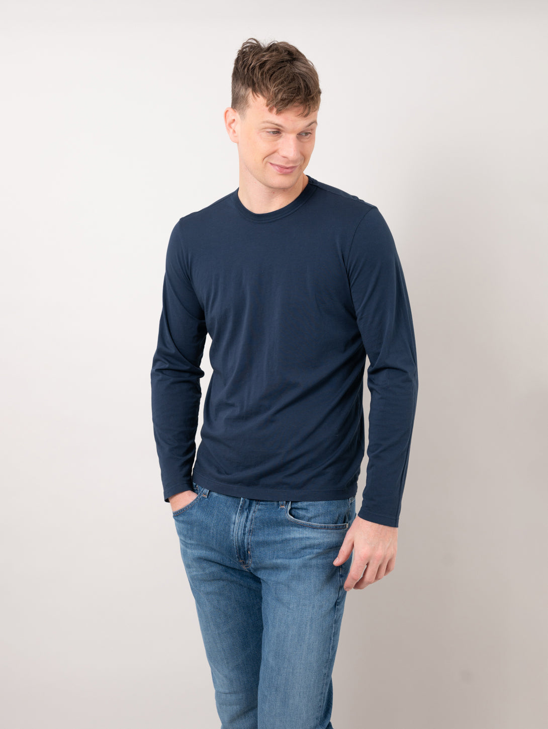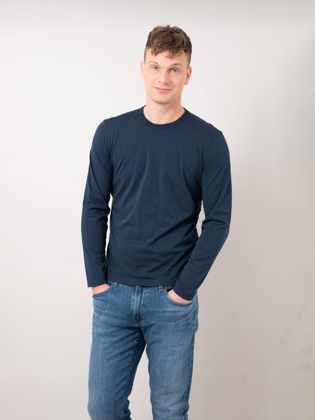 Easy, breathable, and made to move with you — this lightweight cotton long sleeve is a staple for laid-back days and effortless layering. Crafted from soft, fine cotton, it features a relaxed fit and classic crew neckline.