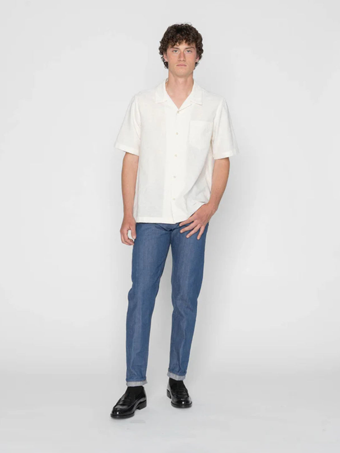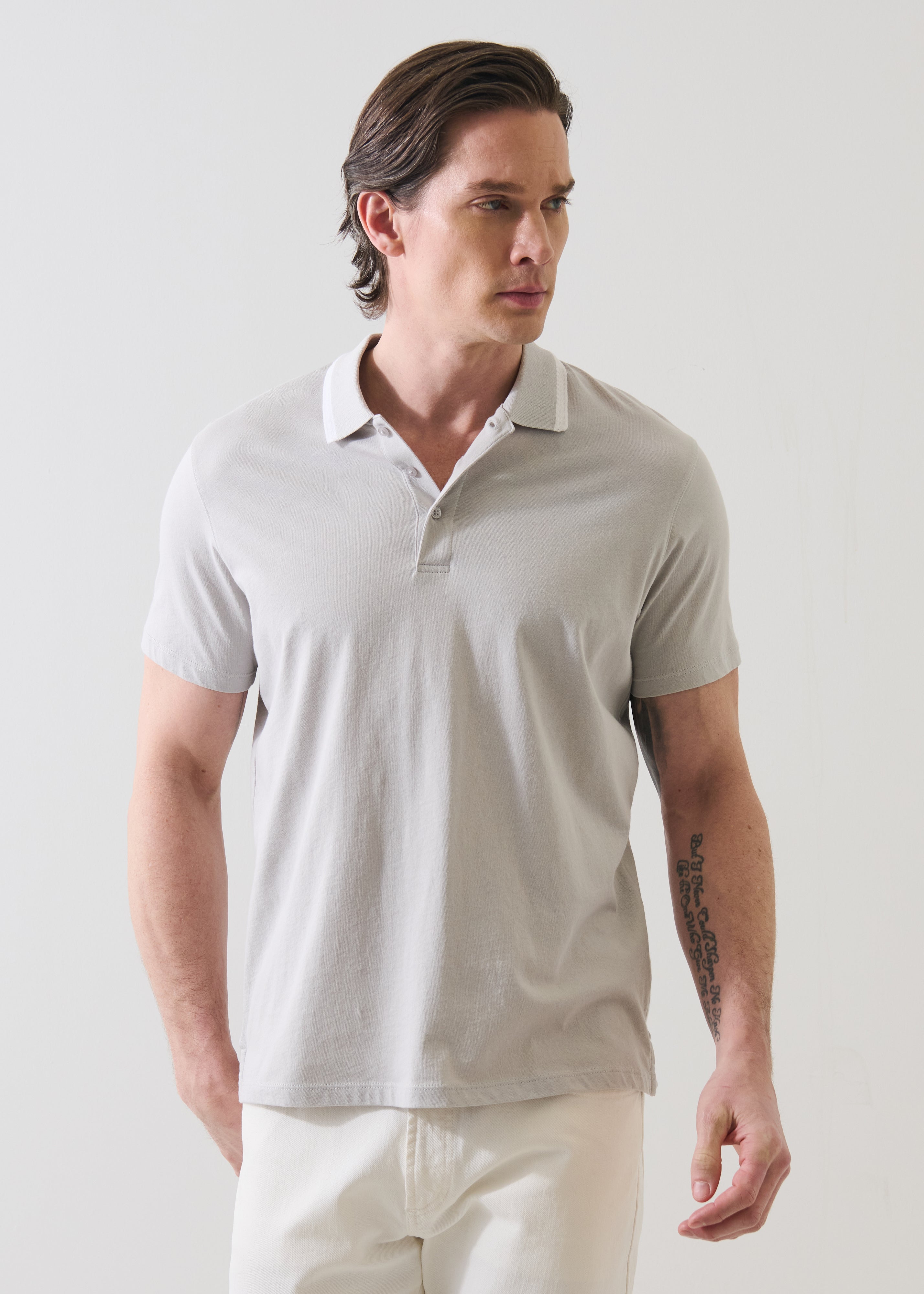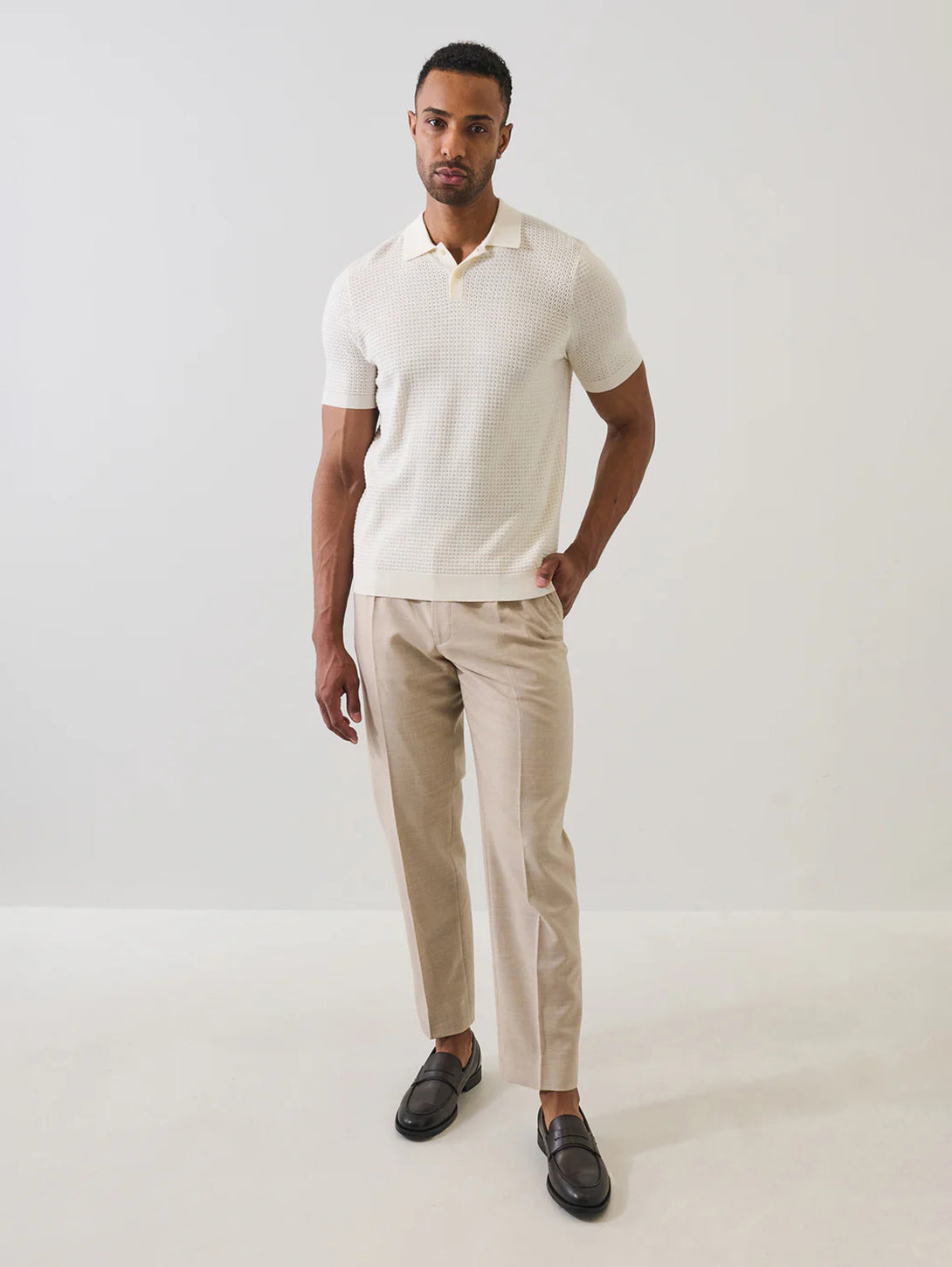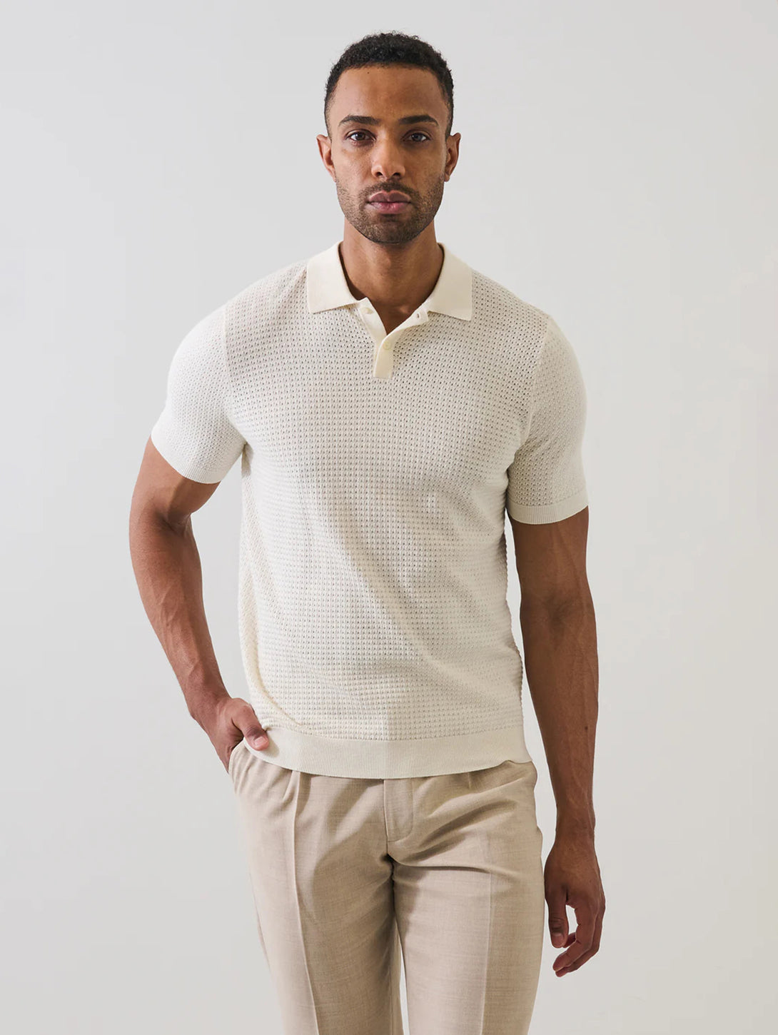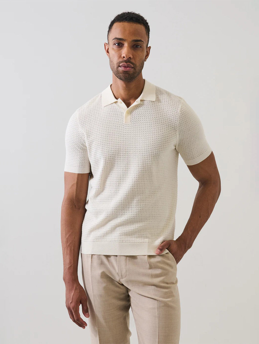 Short Sleeve Perforated Stitch Button Polo - Off White