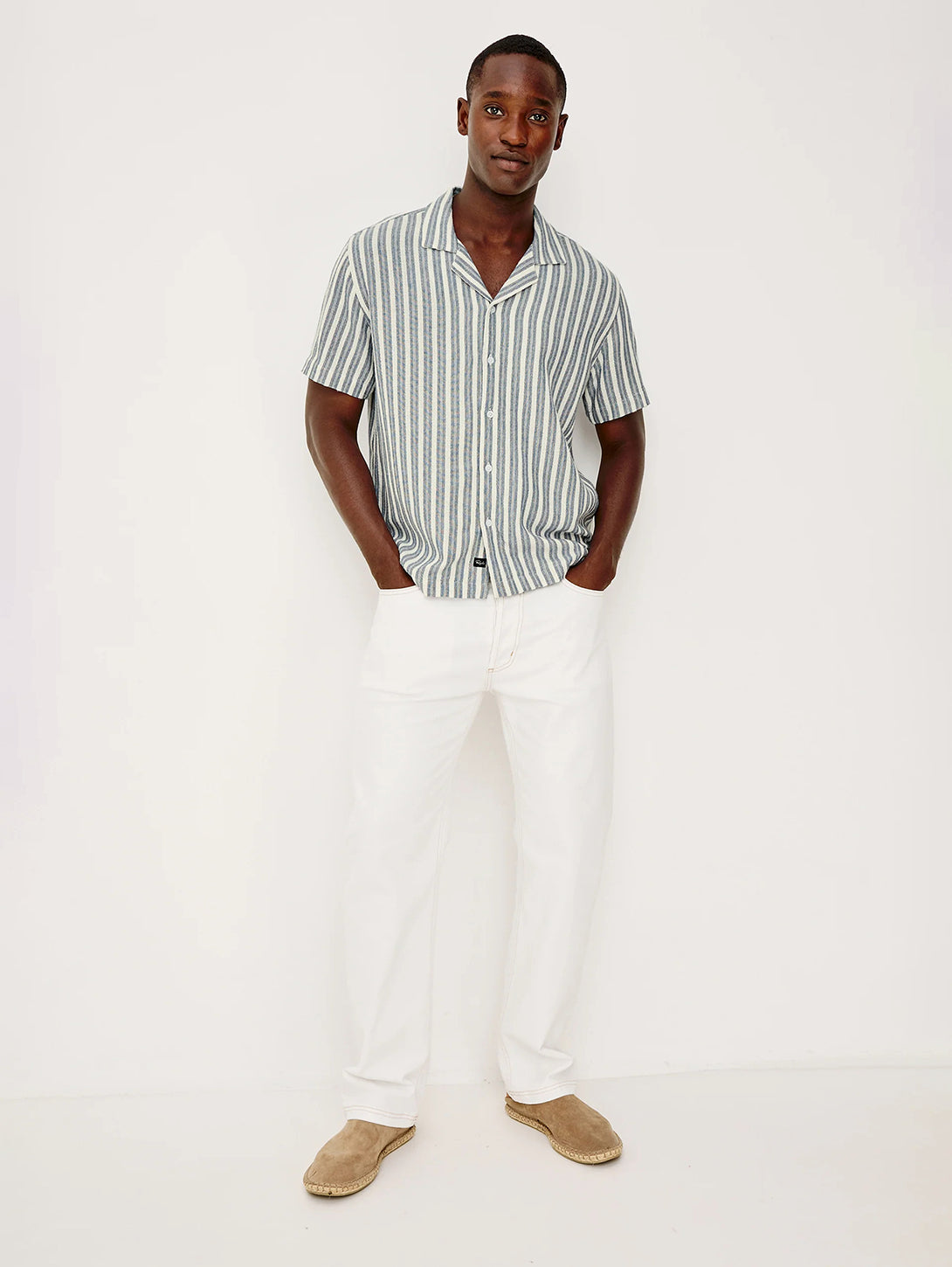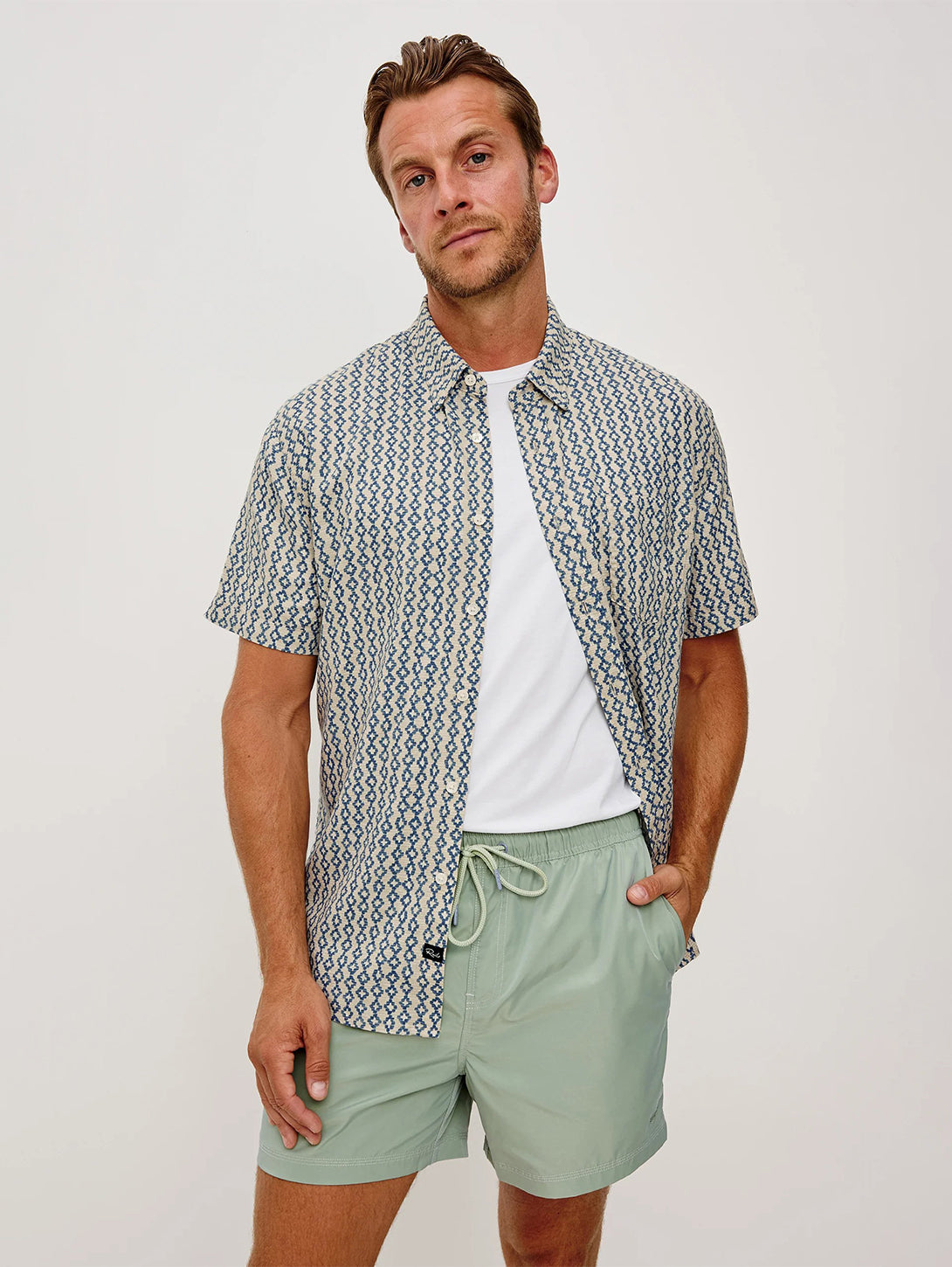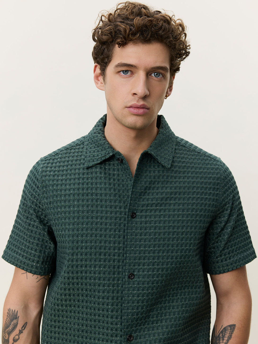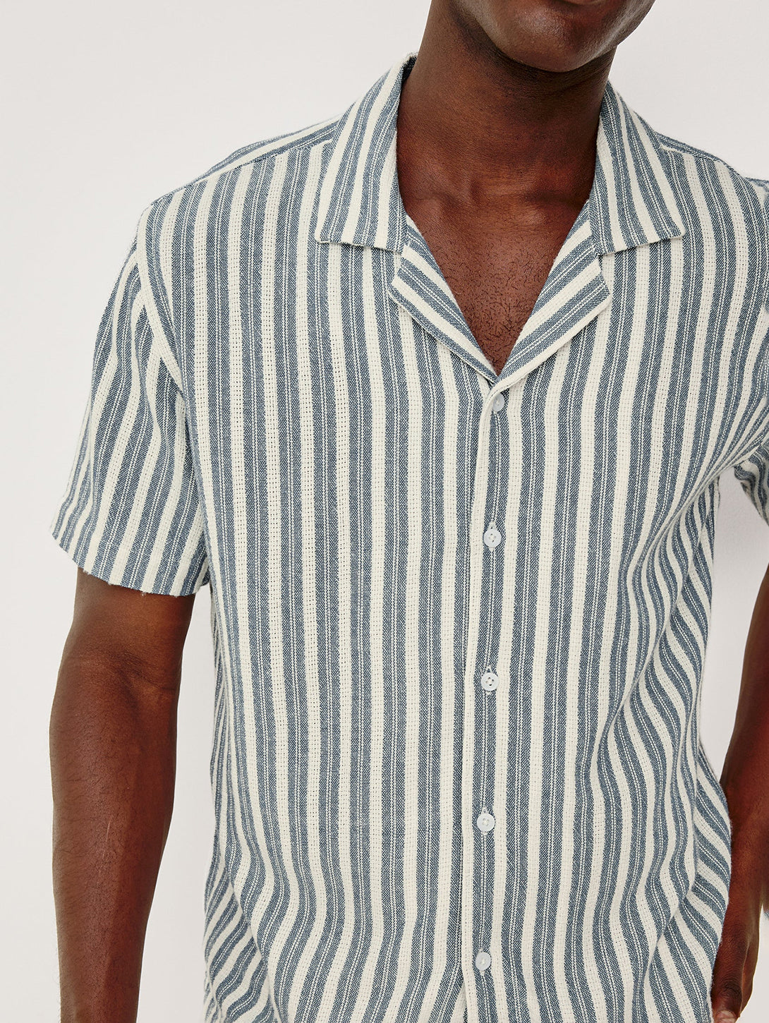 Short Sleeve Perforated Stitch Button Polo - Off White
