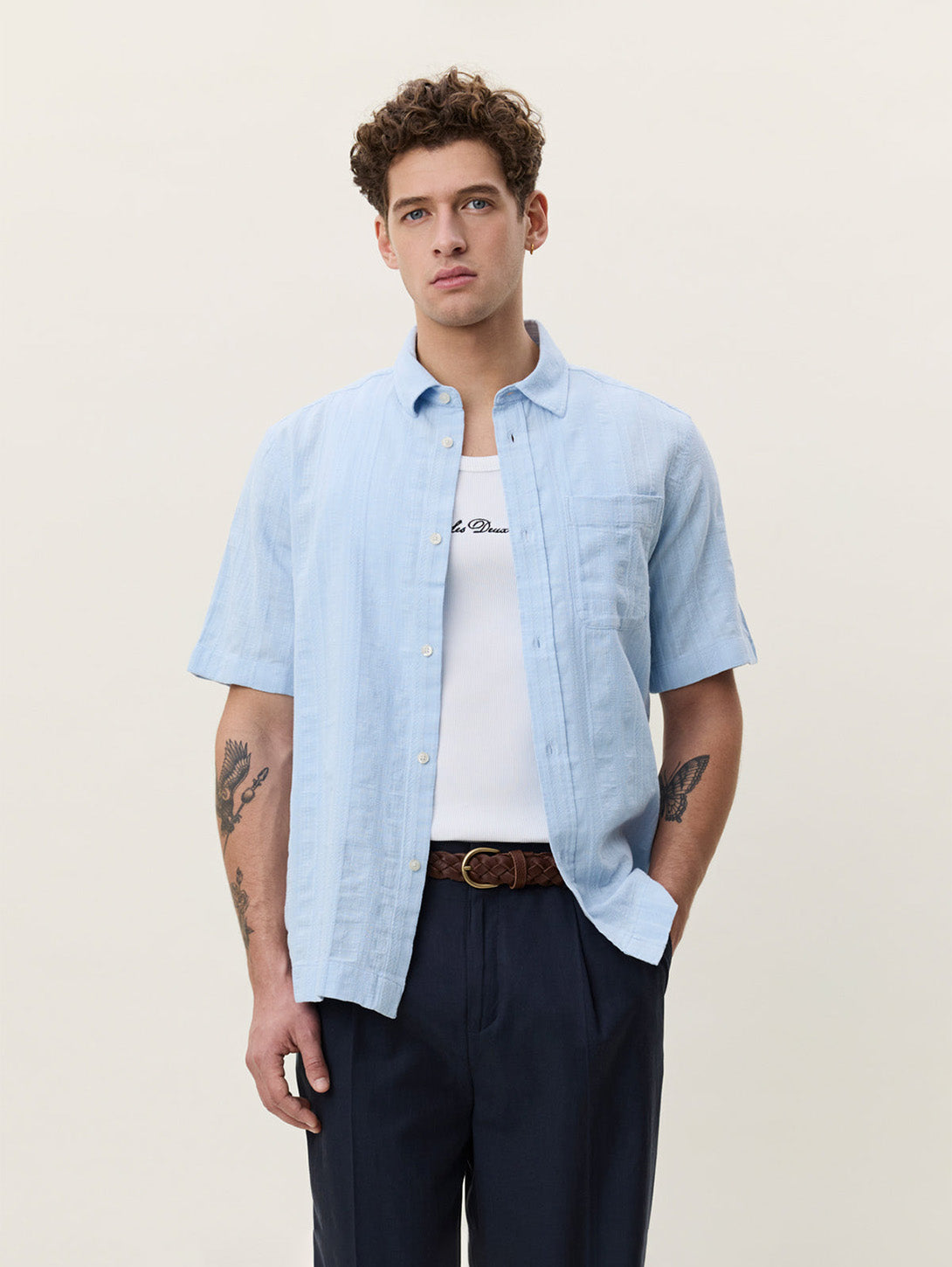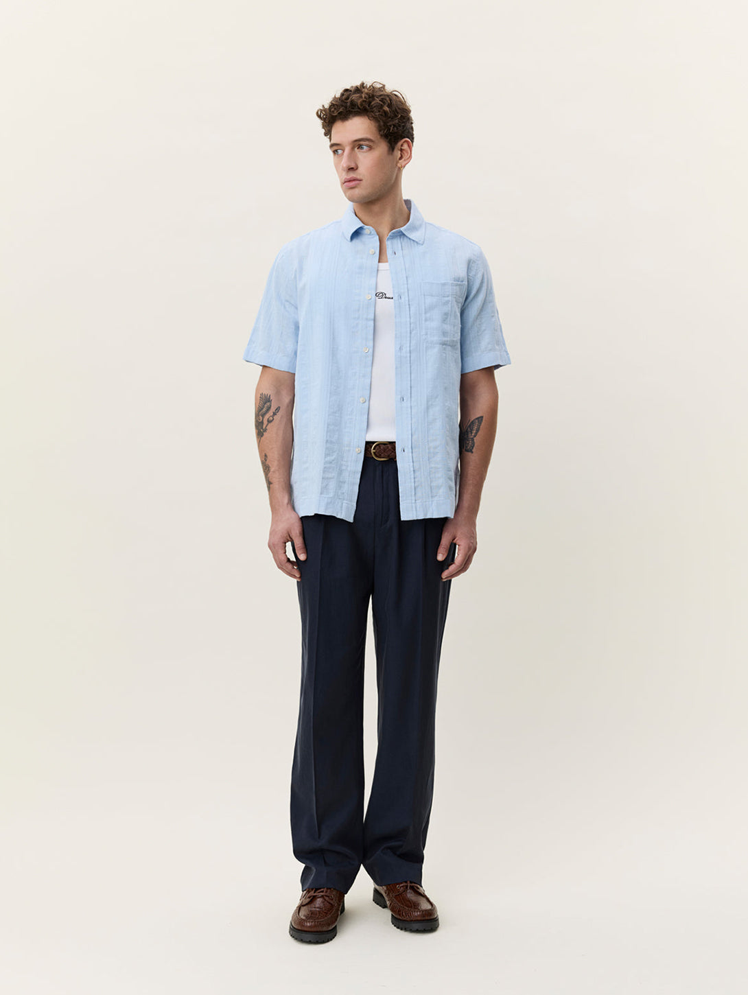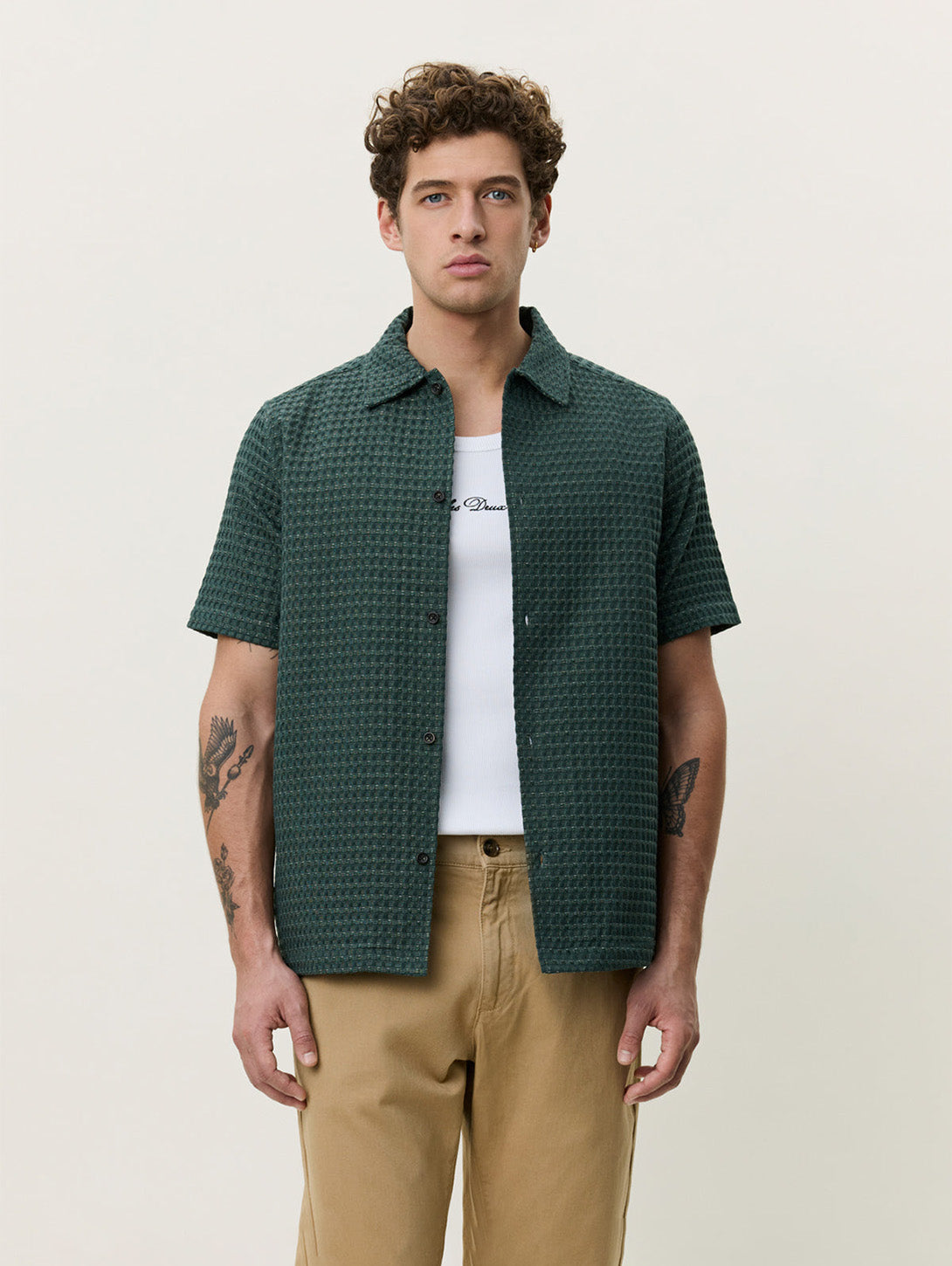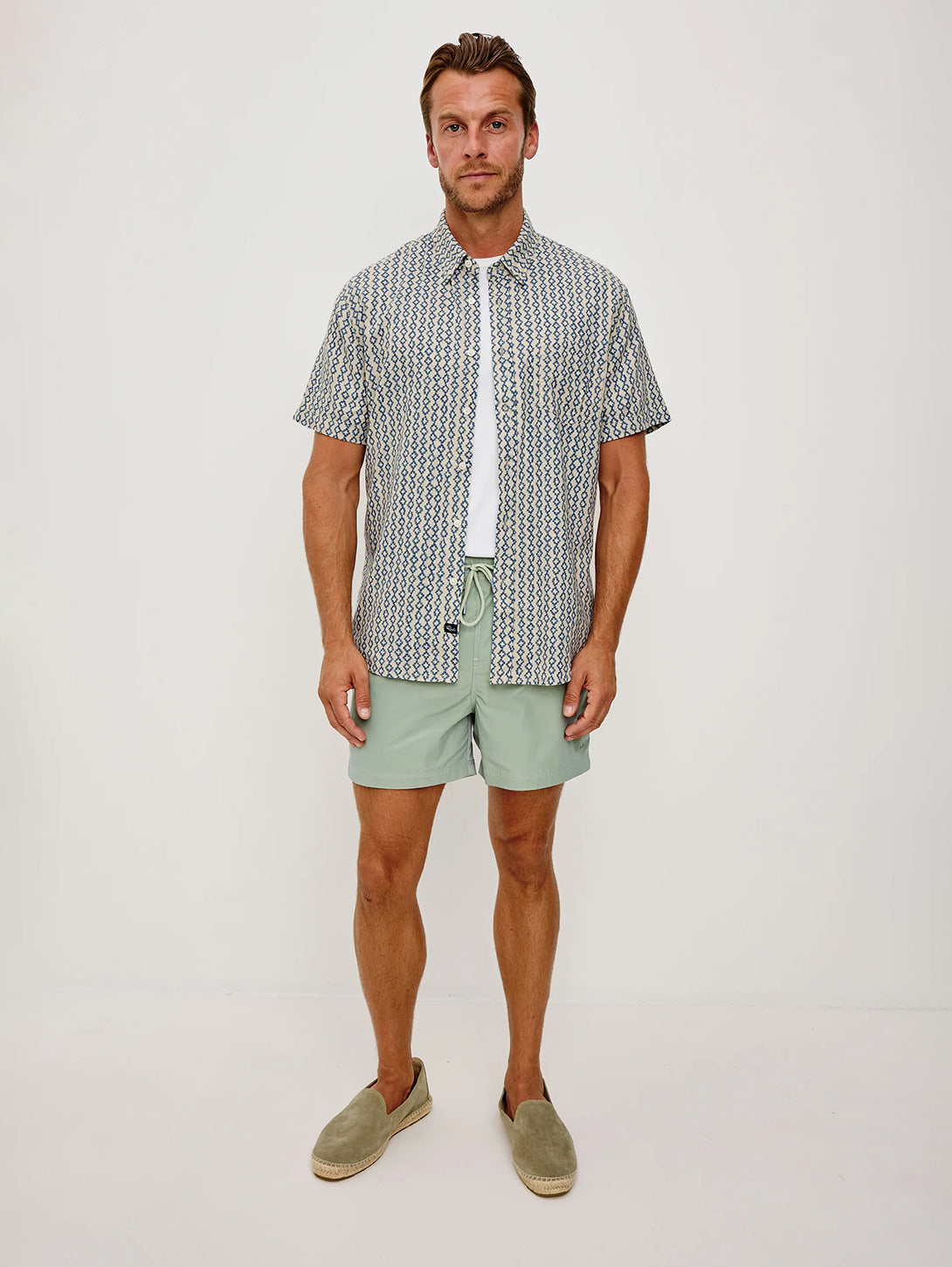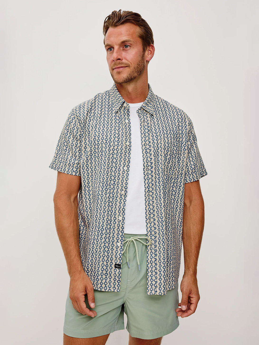 Short Sleeve Perforated Stitch Button Polo - Off White