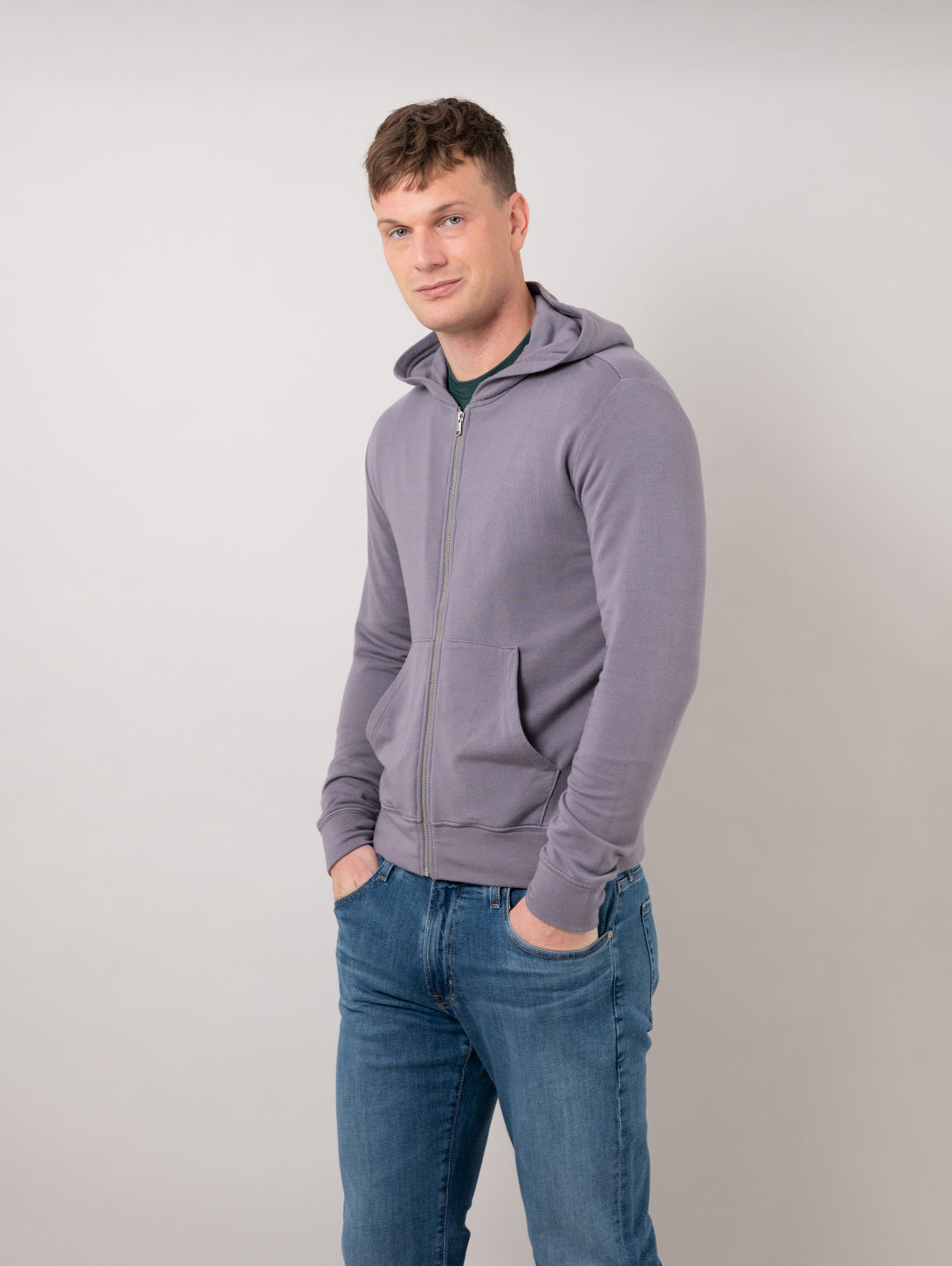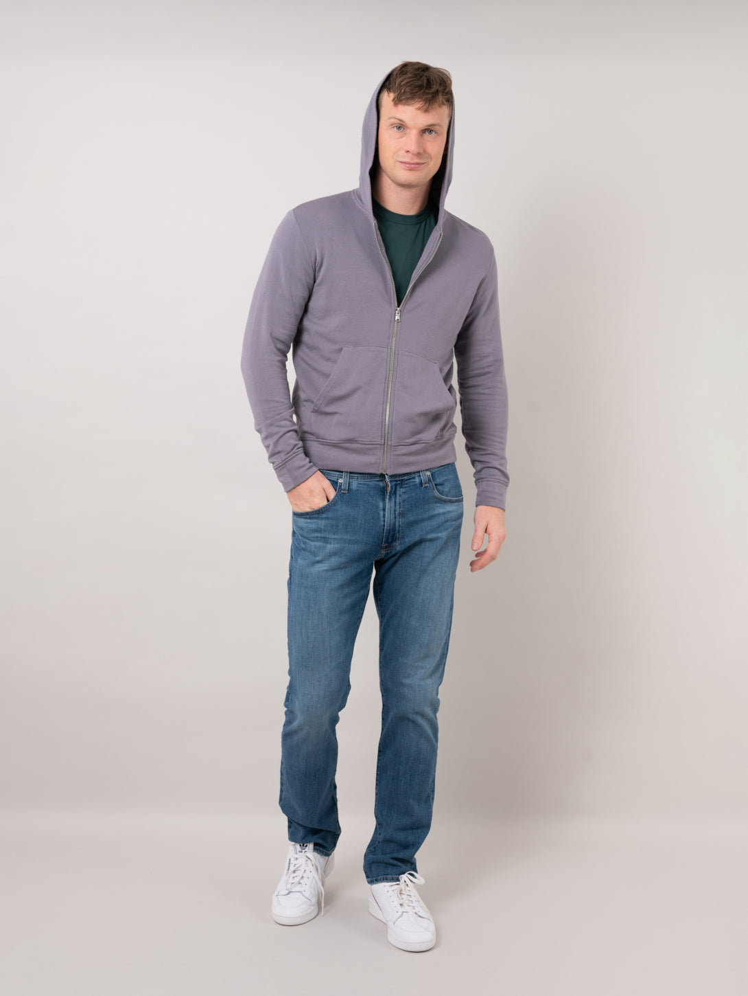 This zip-up hoodie is crafted from medium-weight luxe fleece with an extra cozy brushed interior, making it the ultimate weekend layer for workout or lounge. Designed to give a non-bulky fit.