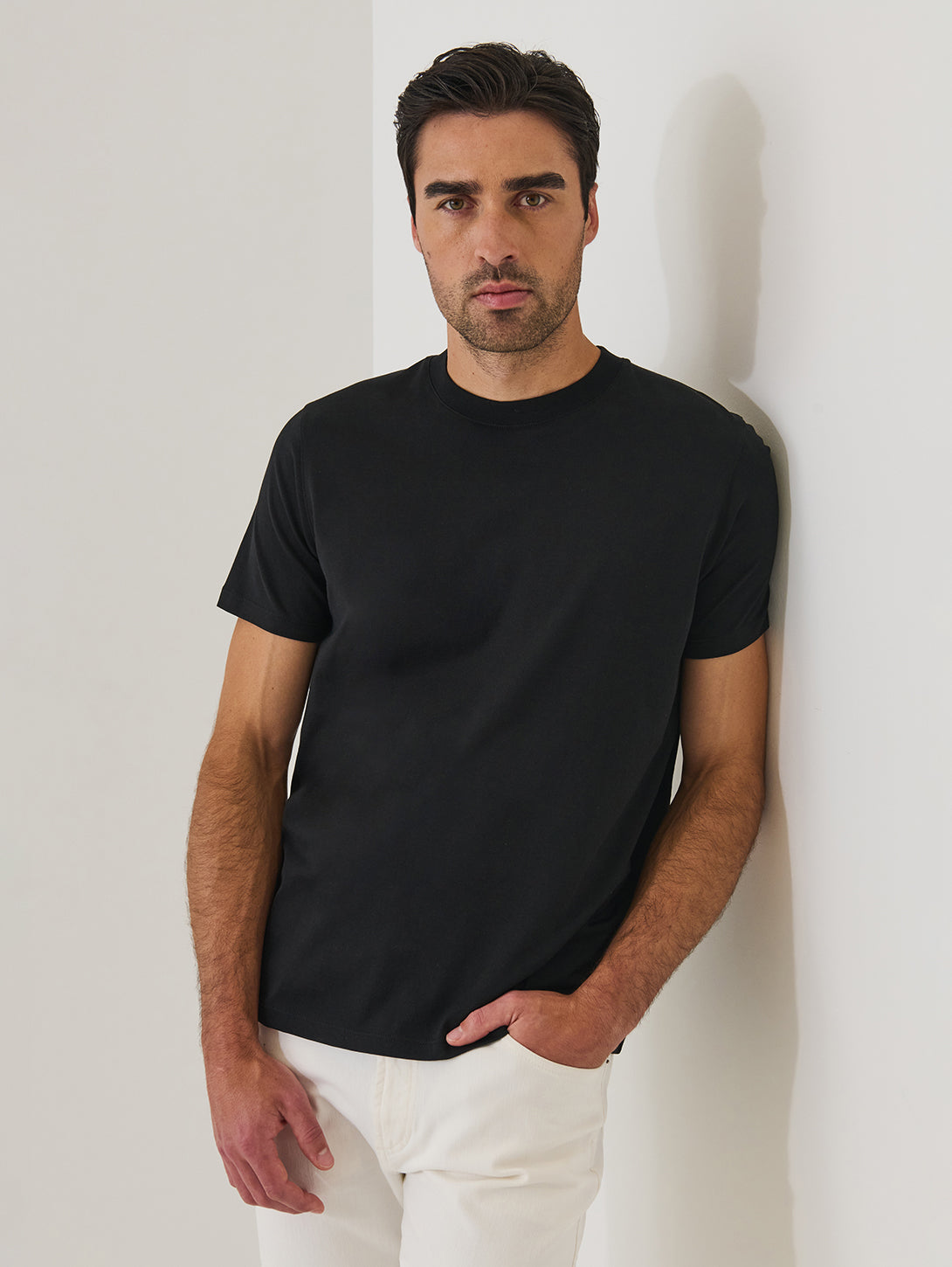 Our brand takes great pride in sourcing the highest quality fabrics and yarns. This 100% Organic Pima cotton jersey is sustainably sourced in Peru and is offered in a versatile midweight. It is styled with a slightly higher collar band which makes it perfect for effortless layering. Explore our vast assortment of refined, timeless colours.