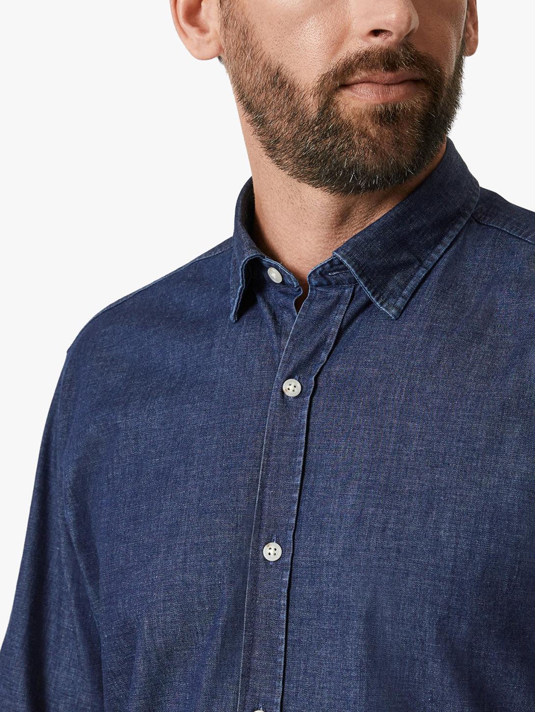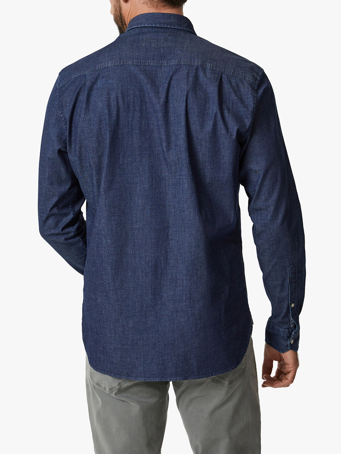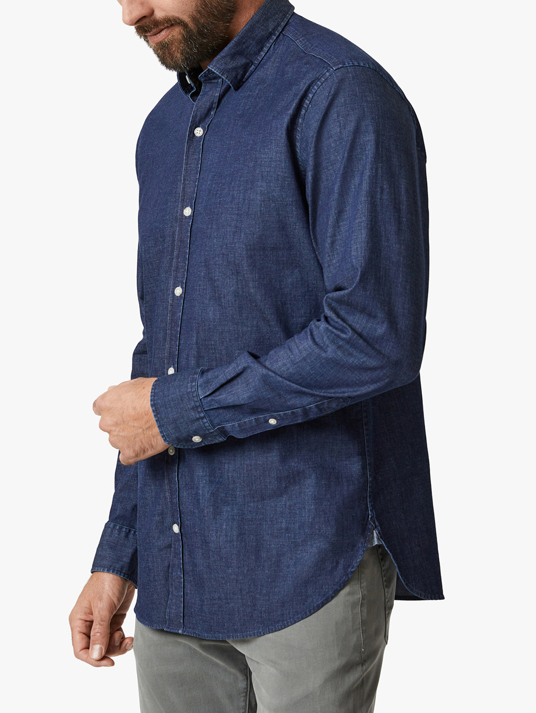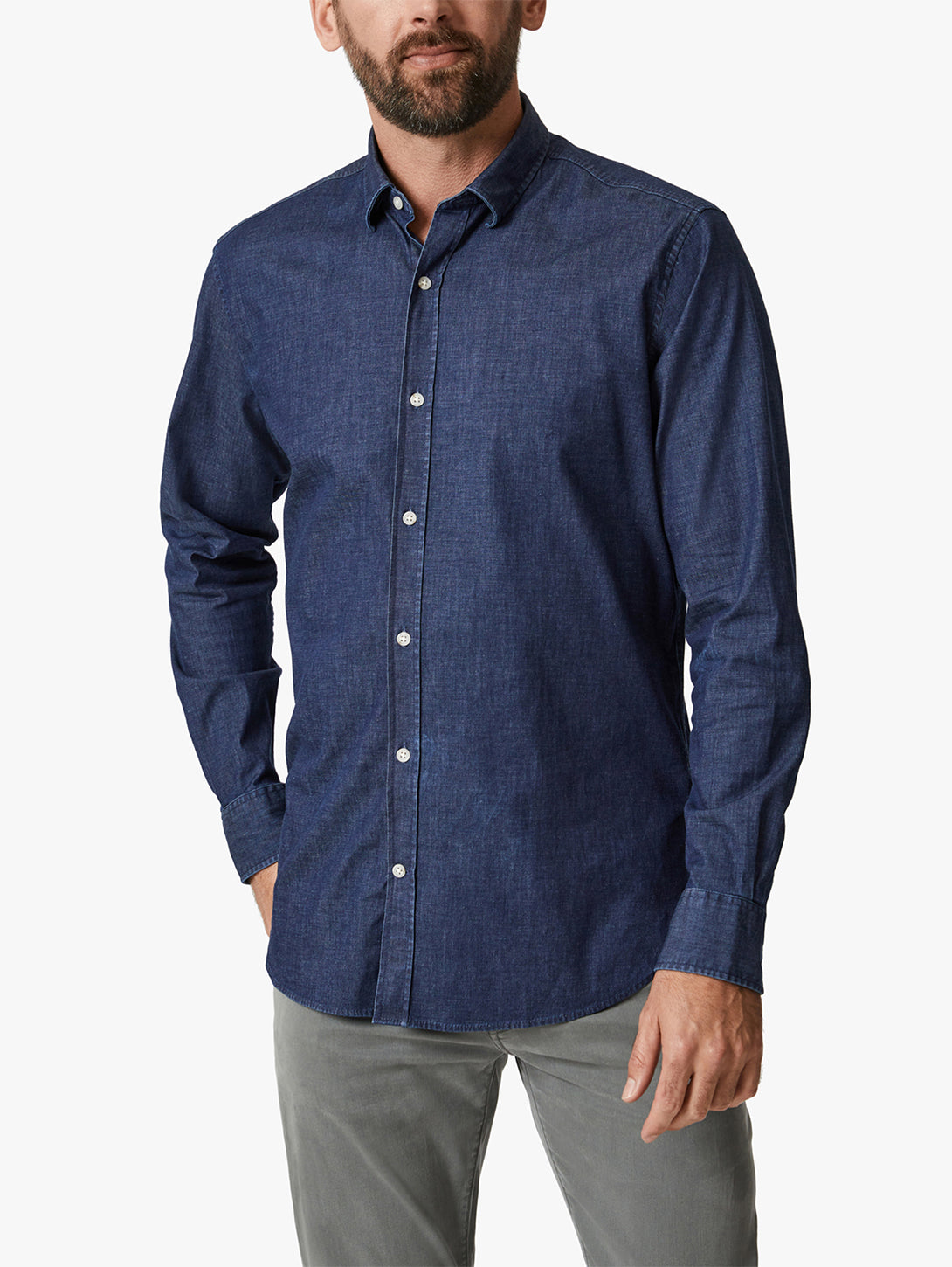 A modern button-down, this denim shirt has an engineered fit that’s tailored yet comfortable. We designed it with a shirttail hem you can wear loose or tucked in for an easily dressed-up style.- - - Measurements based on a size Medium.