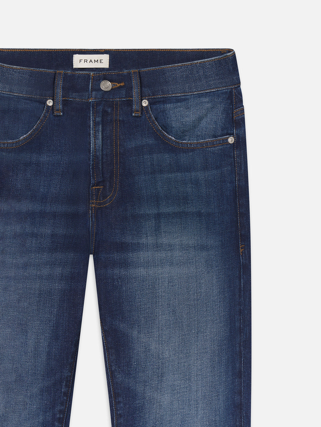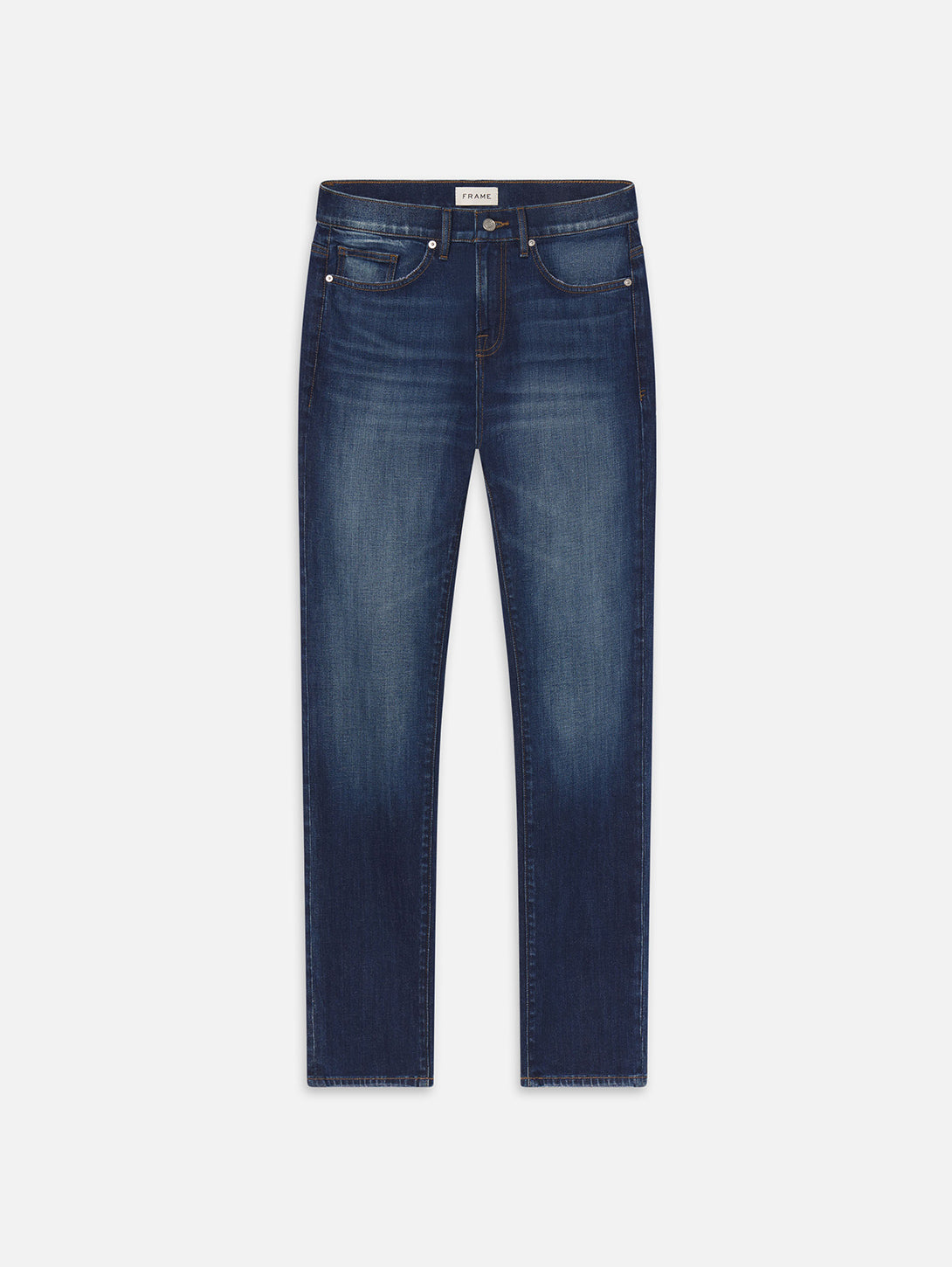 A FRAME signature jean, this style is designed with a classic 5-pocket construction, comfortable mid rise, flattering straight leg, and tapered slim fit at the leg opening. Crafted from smooth Structured Stretch denim.