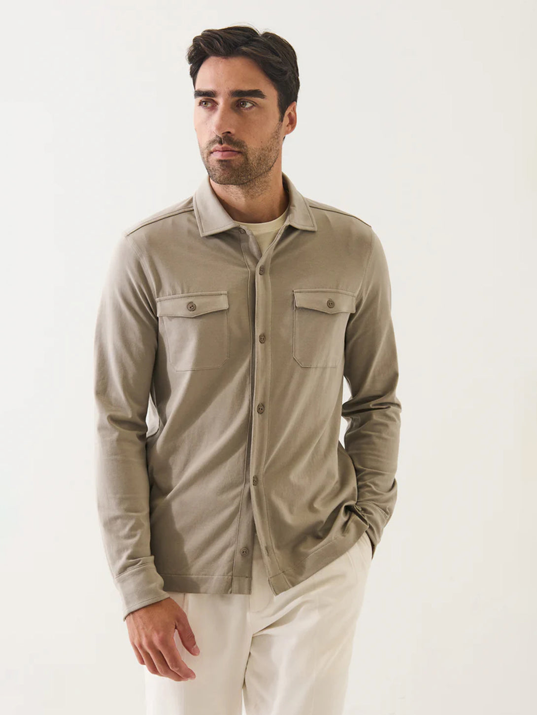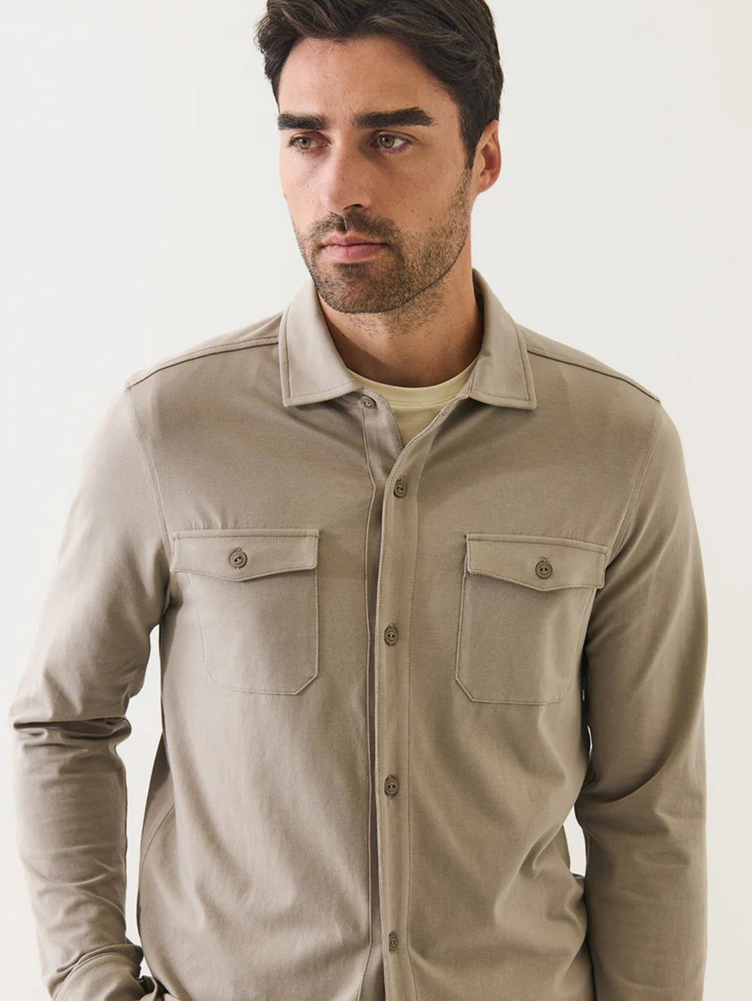This long sleeve knit shirt is cut from our comfortable Iconic Peruvian Pima cotton stretch jersey and designed with two-flap chest pockets. It offers the look of a classic button-up shirt, yet the comfort and softness of your favourite tee. Pair with your favourite denim or chino.