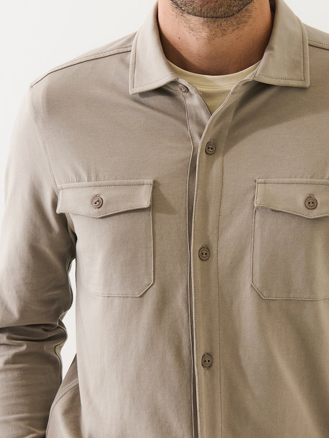 Long Sleeve Pima Flap Pocket Overshirt - Fog