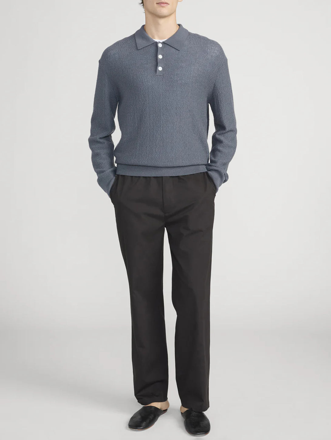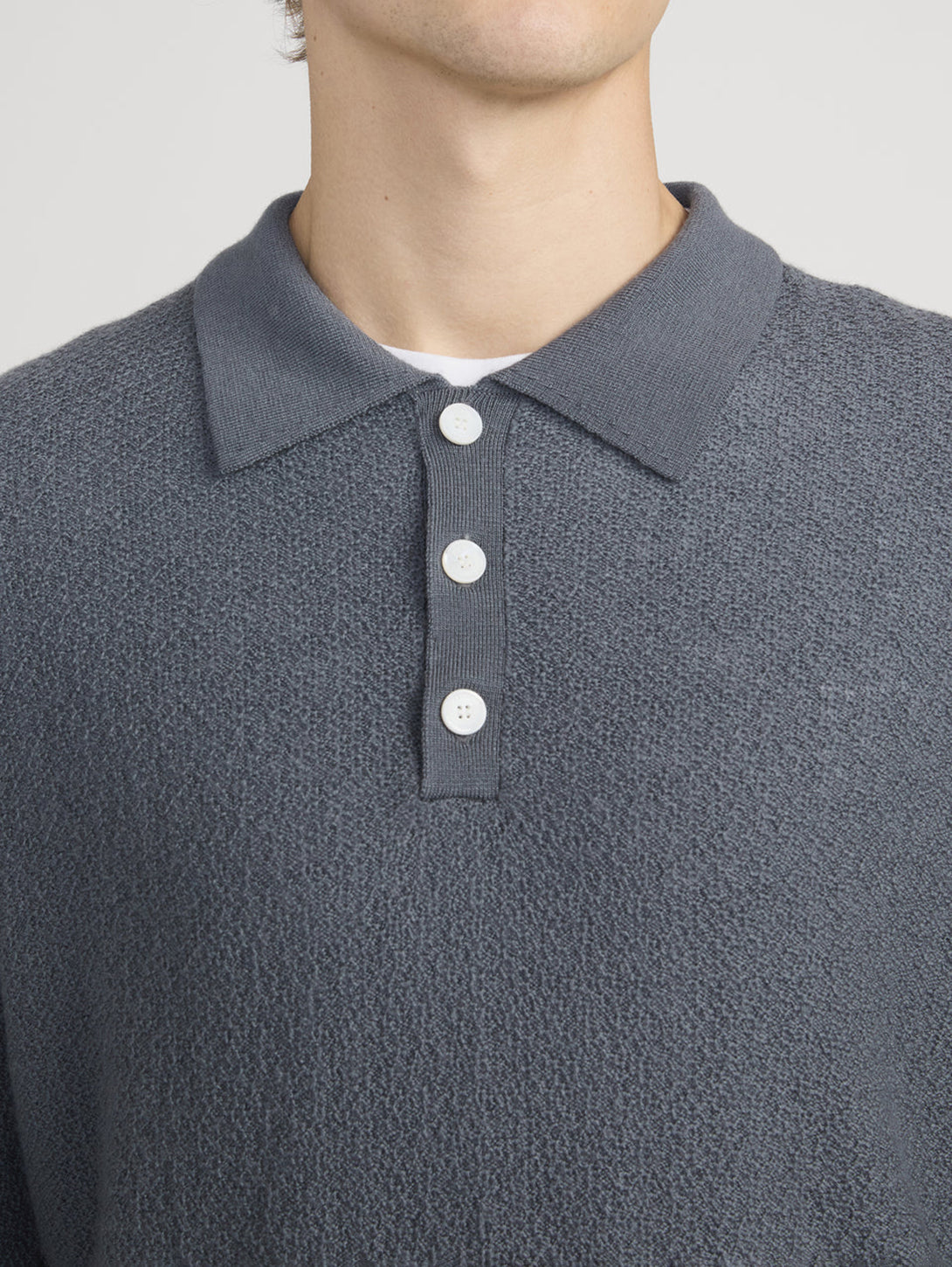 Long Sleeve Polo Sweater - Blue Grey
