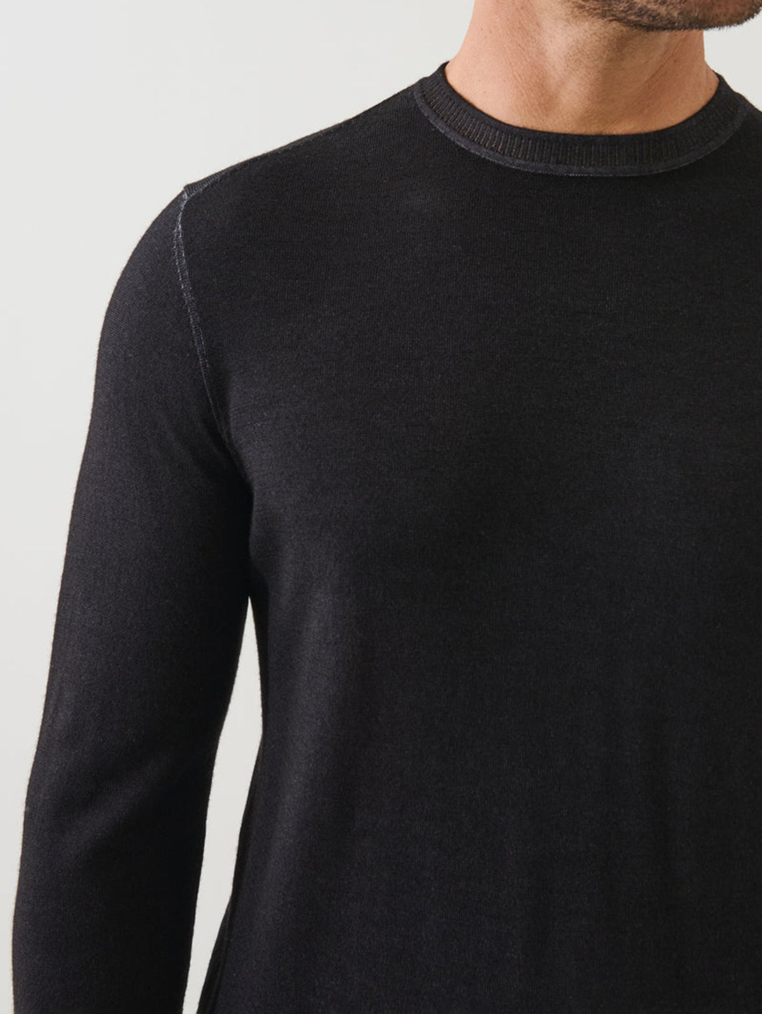 Crafted from 100% extra-fine merino wool and finished with a subtle vintage wash, this lightweight crewneck sweater offers softness, and tonal depth. Designed for transitional seasons and smart-casual style, it pairs a polished look with everyday ease.