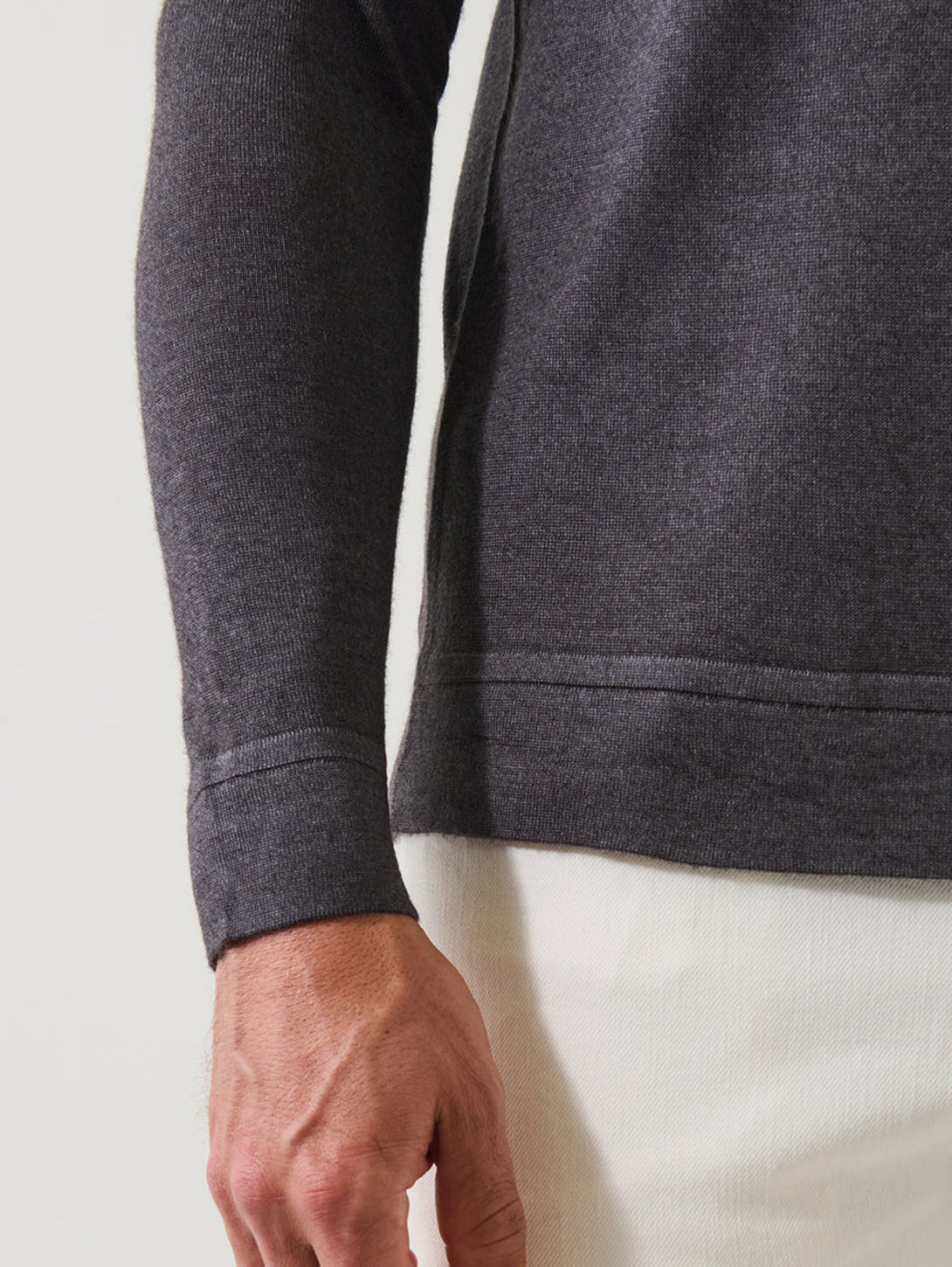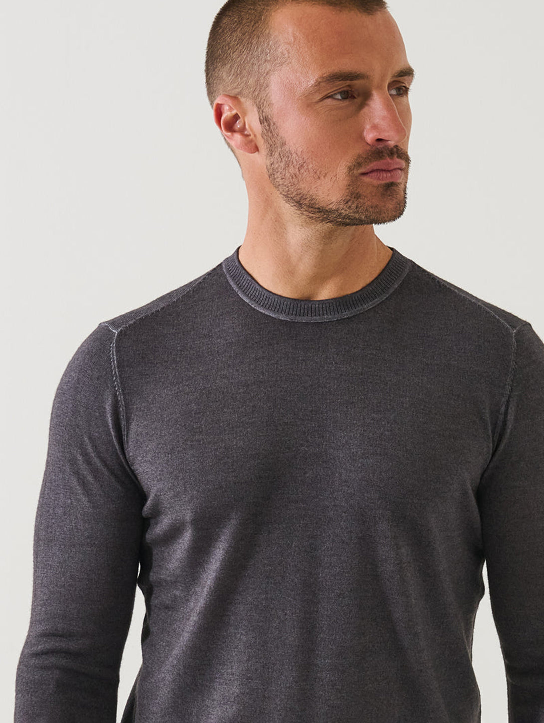 Crafted from 100% extra-fine merino wool and finished with a subtle vintage wash, this lightweight crewneck sweater offers softness, and tonal depth. Designed for transitional seasons and smart-casual style, it pairs a polished look with everyday ease.