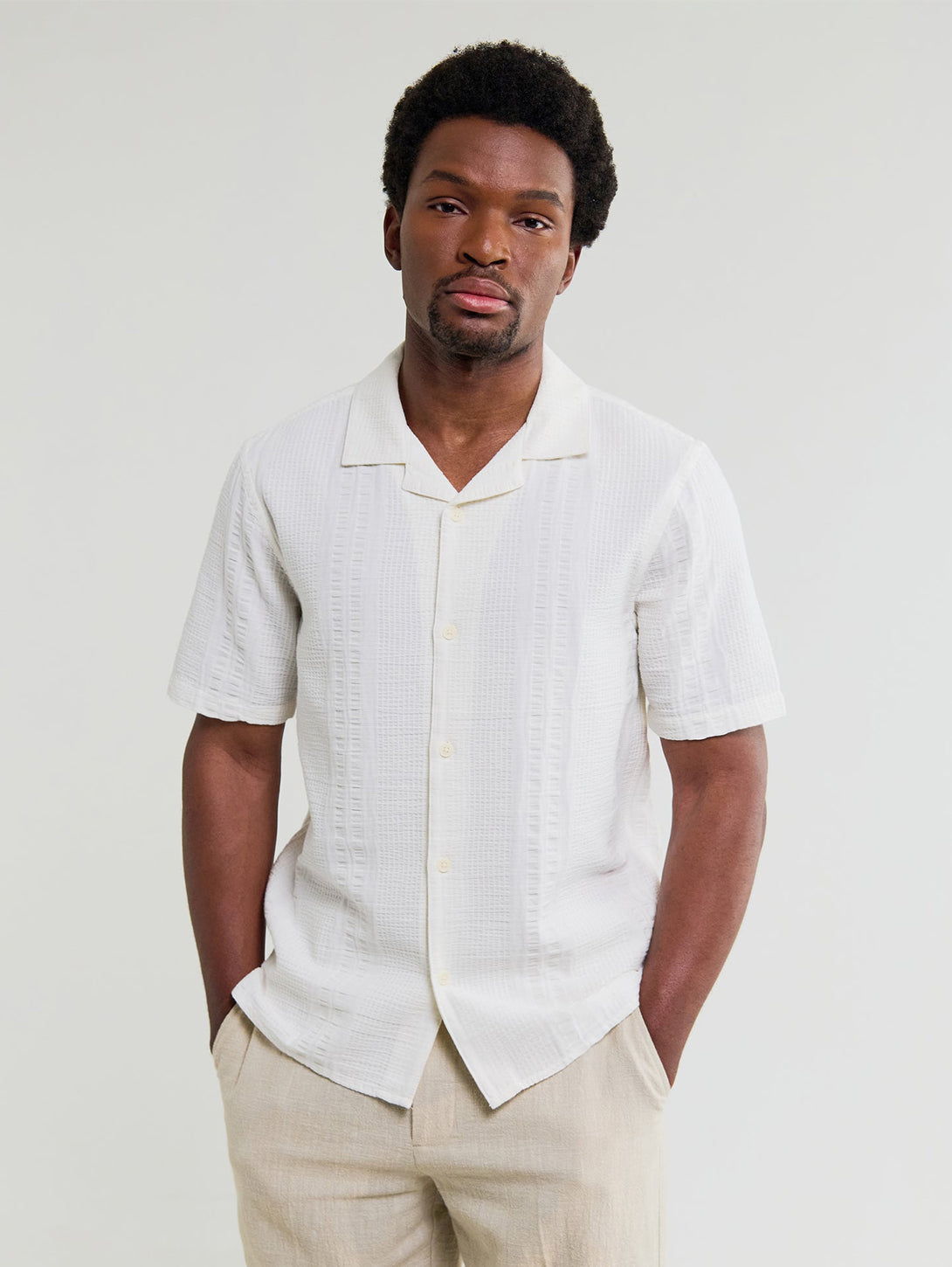 Didcot Short Sleeve Shirt - Ecru Double-Weave Seersucker