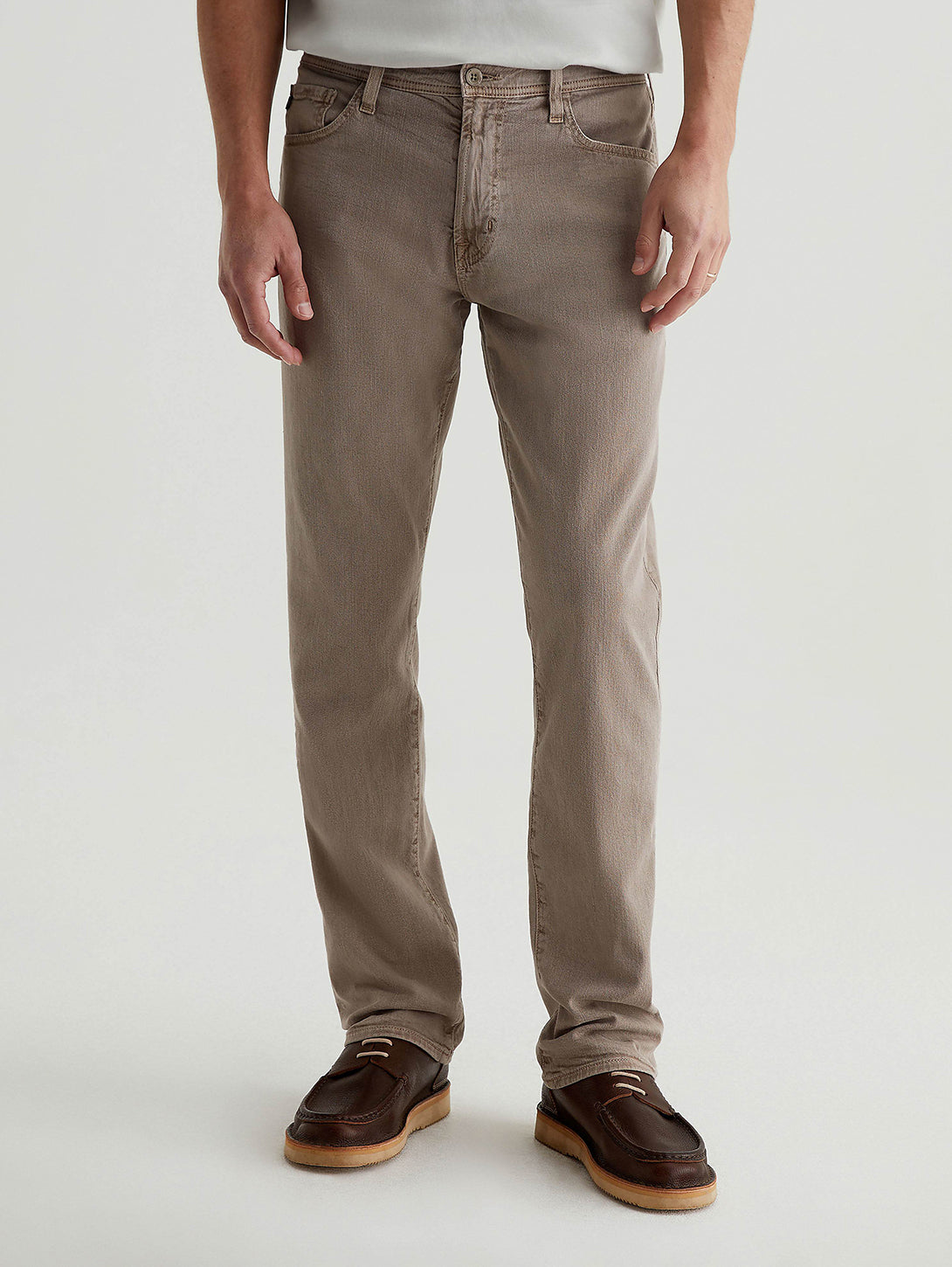 Our Everett slim straight gets a warm-weather update in airy cotton-linen twill with a bit of stretch. Done in light brown, these five-pocket pants for men have a comfortable mid-rise waist and a straight fit that’s relaxed from hip to the knee before slightly tapering at the leg opening.