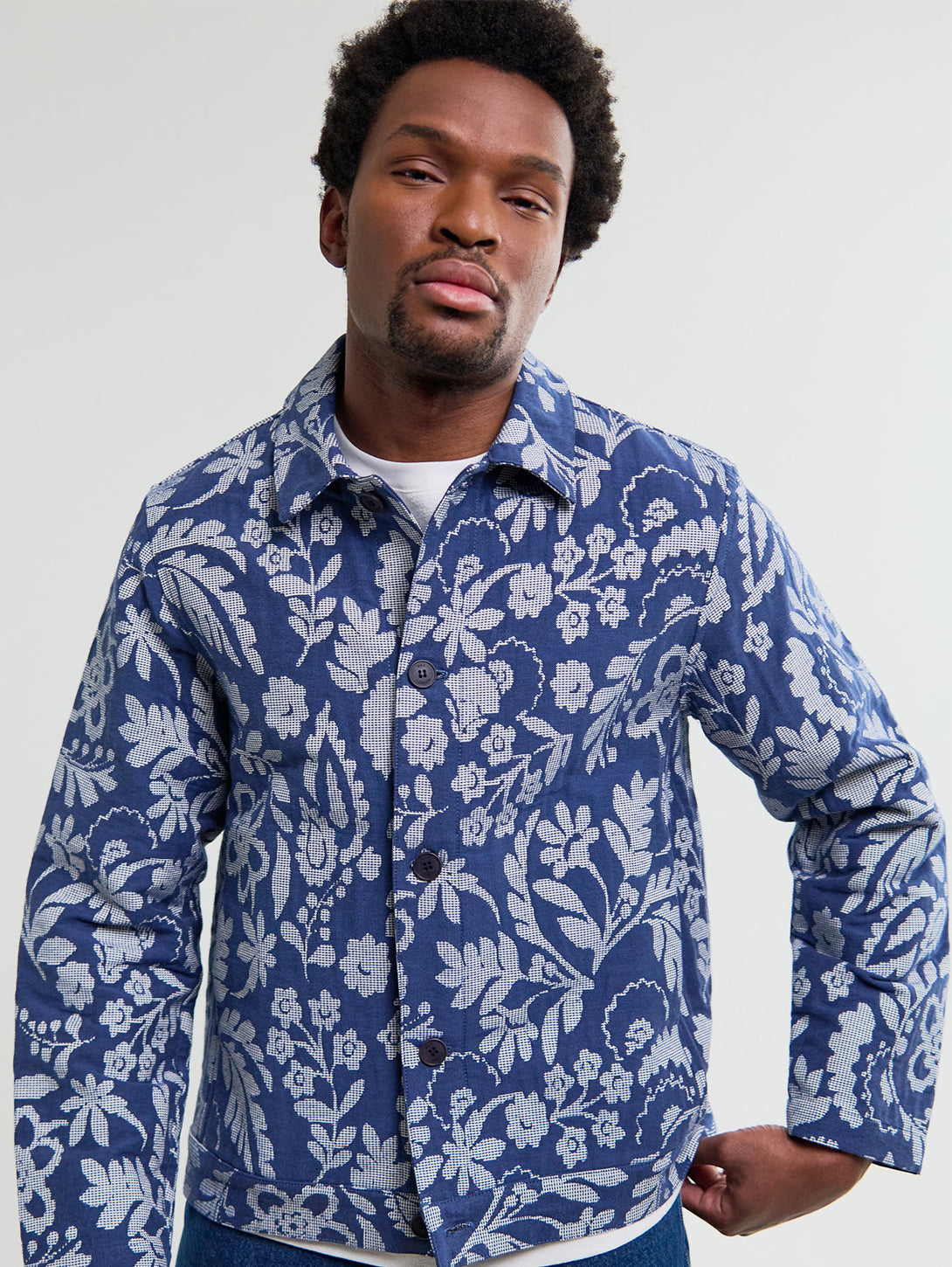 Iggy Jacquard Jacket - Blue And Ecru Floral