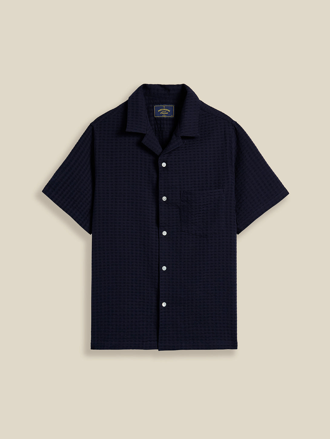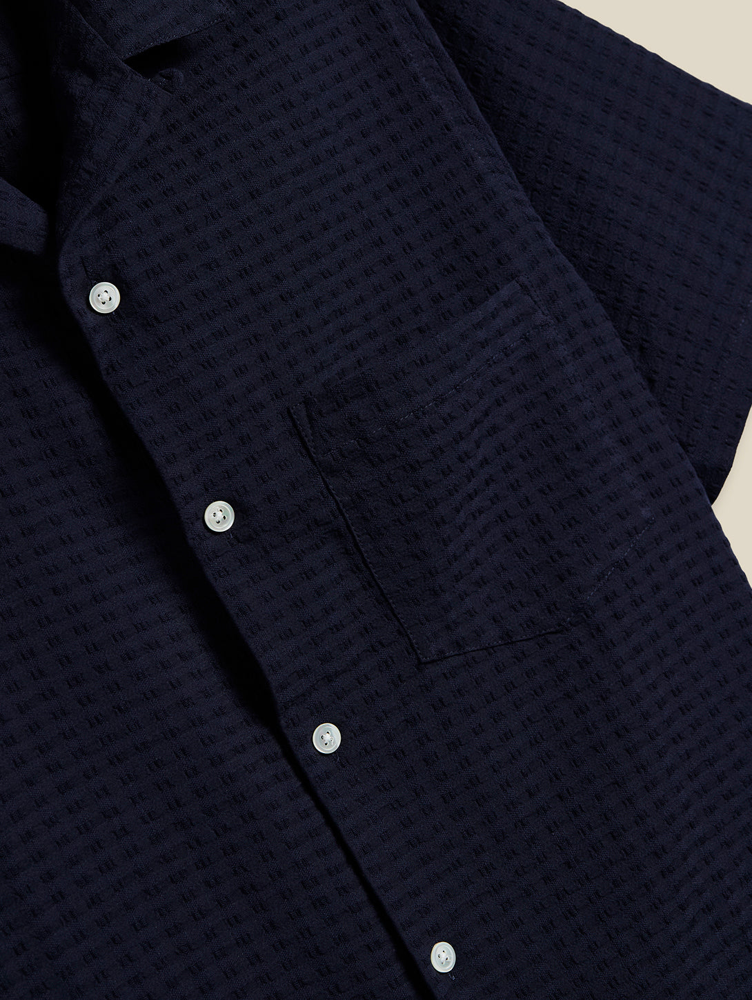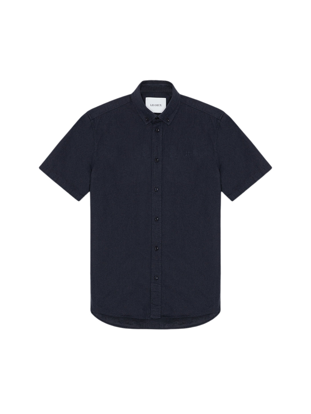 Konrad Cotton Linen Short Sleeve Shirt - Dark Navy