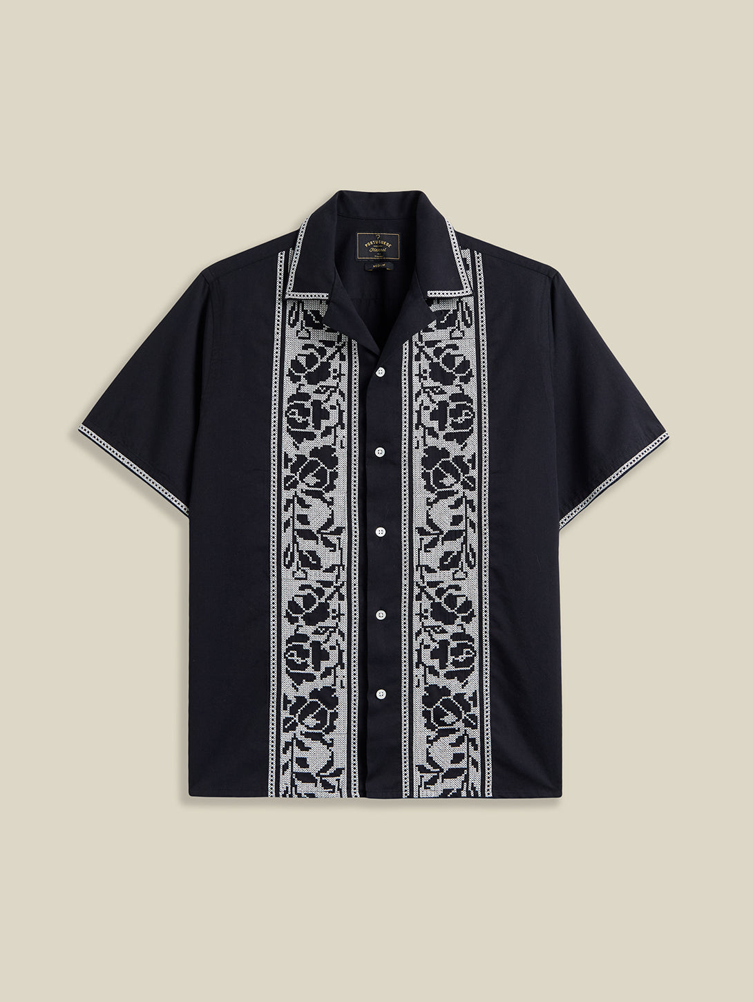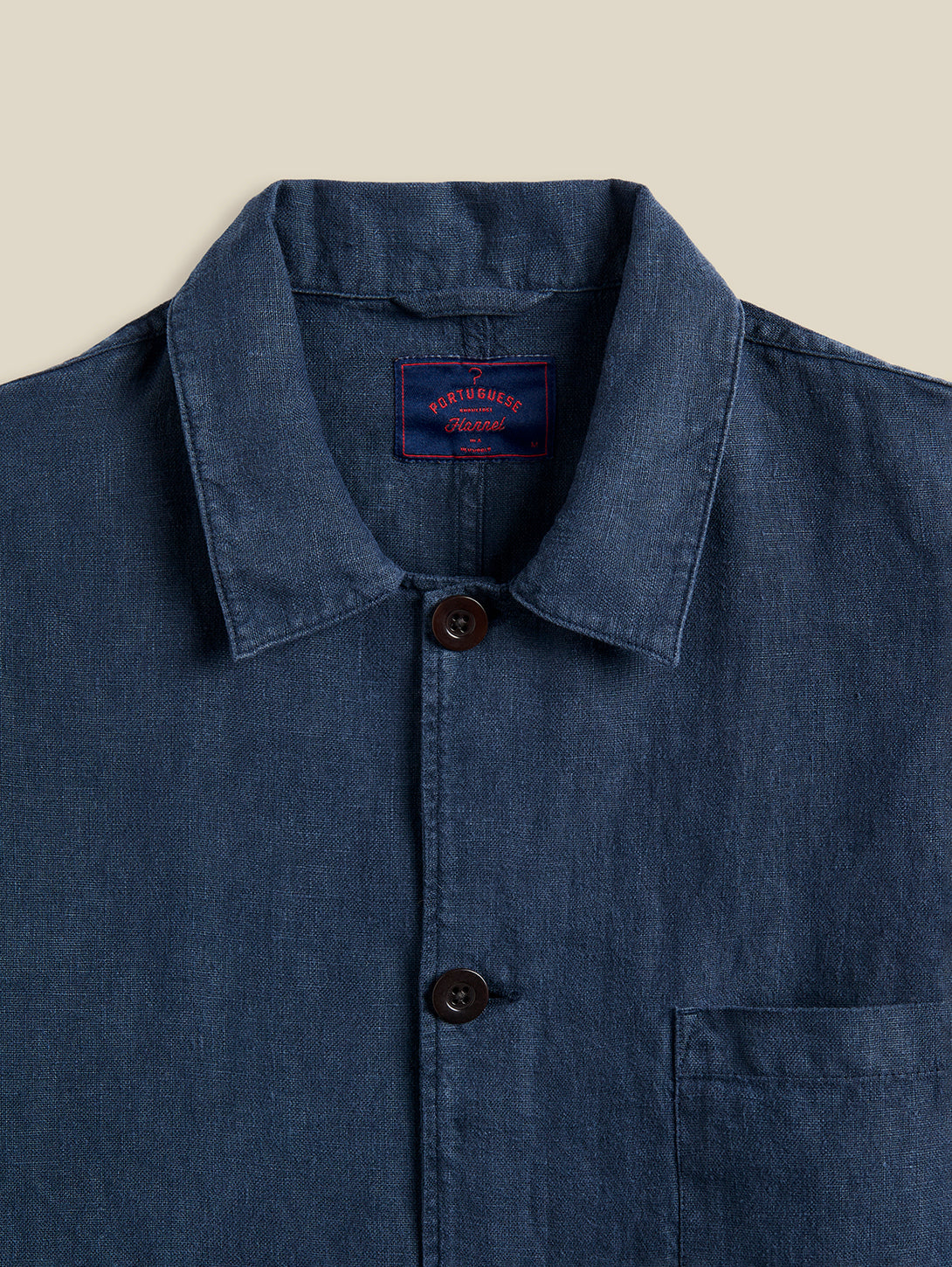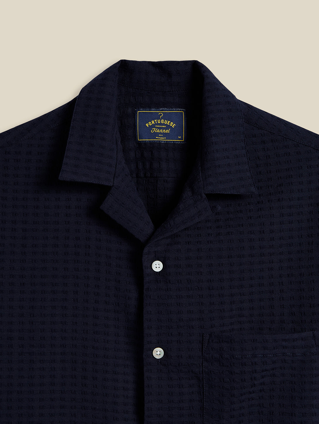 Konrad Cotton Linen Short Sleeve Shirt - Dark Navy