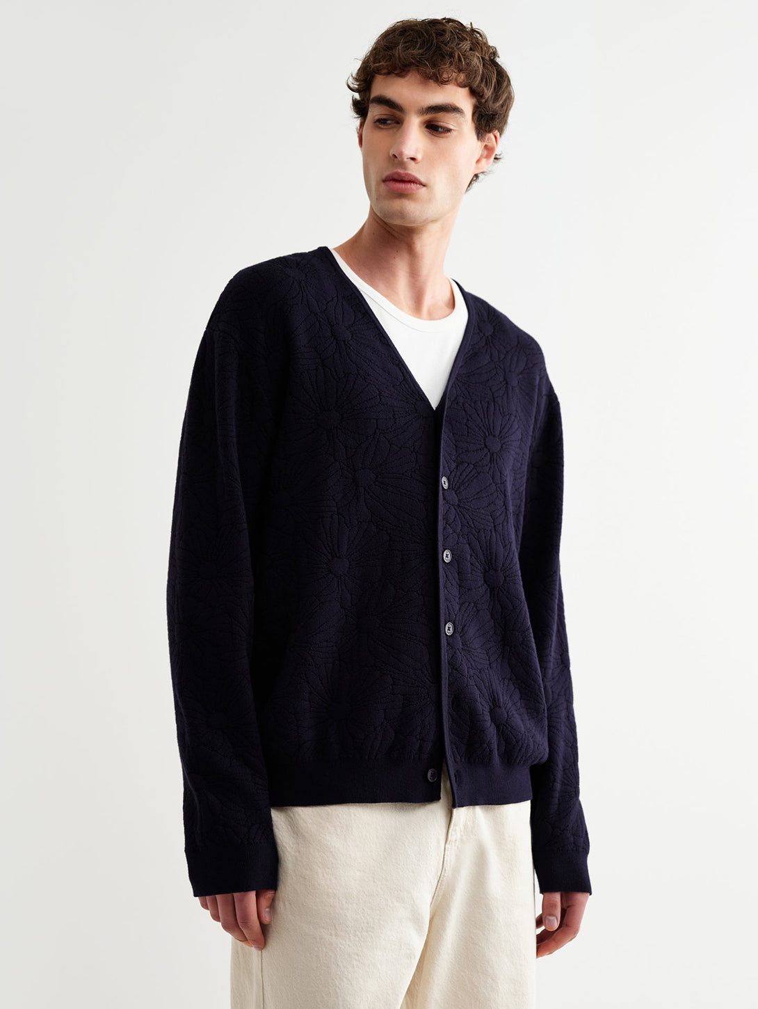 Alban Cardigan - Navy And Black Floral Jacquard