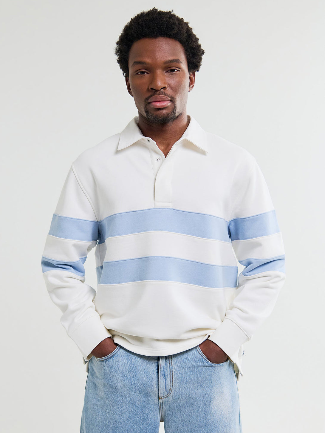 Rowhill Loopback Rugby Shirt - Ecru And Light Blue Stripe