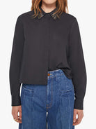 A twist on the classic button-up with long sleeves, a hidden button panel and a cropped fit. The Honor is made from 100% cotton in black with an embellished collar.