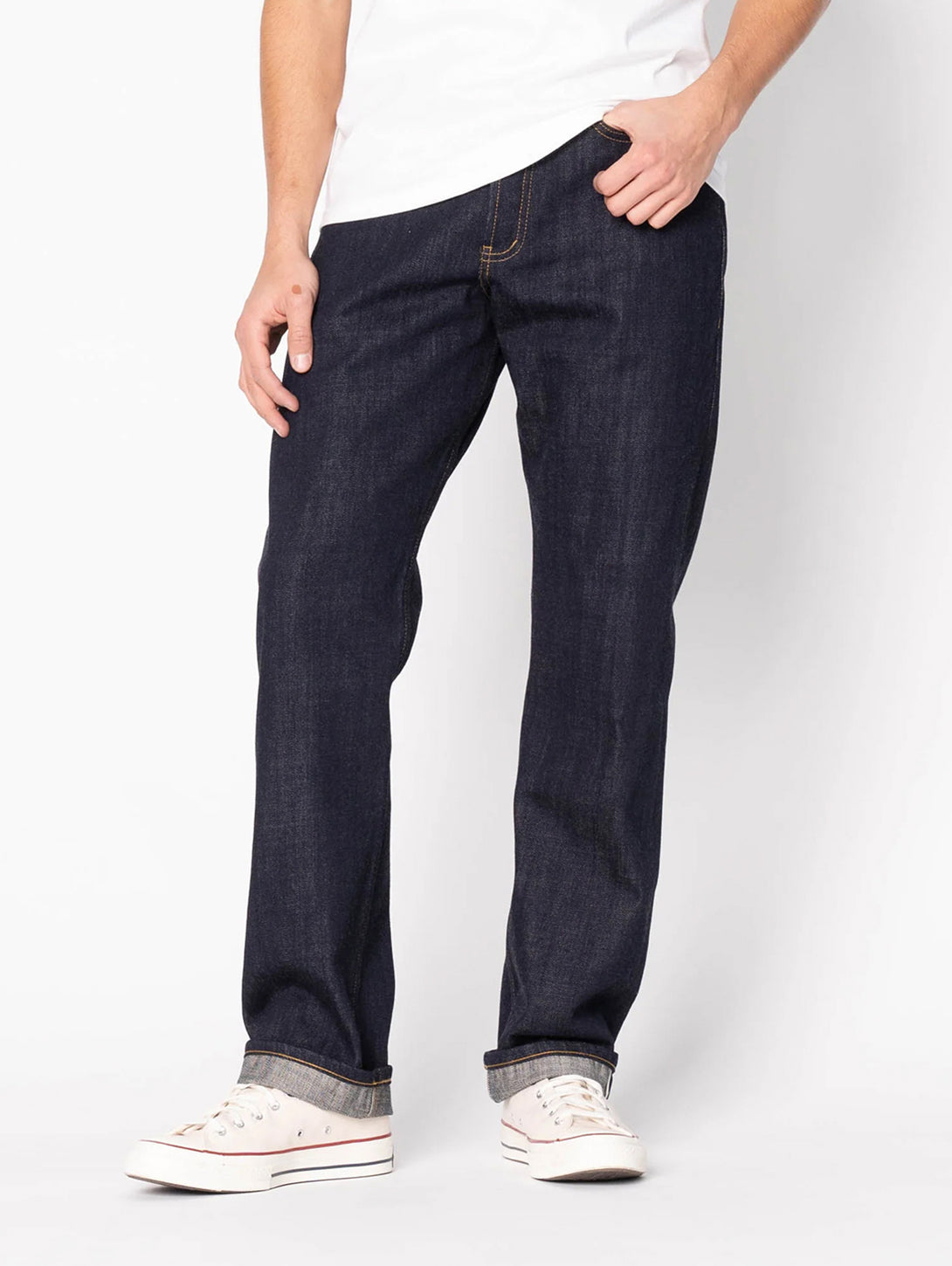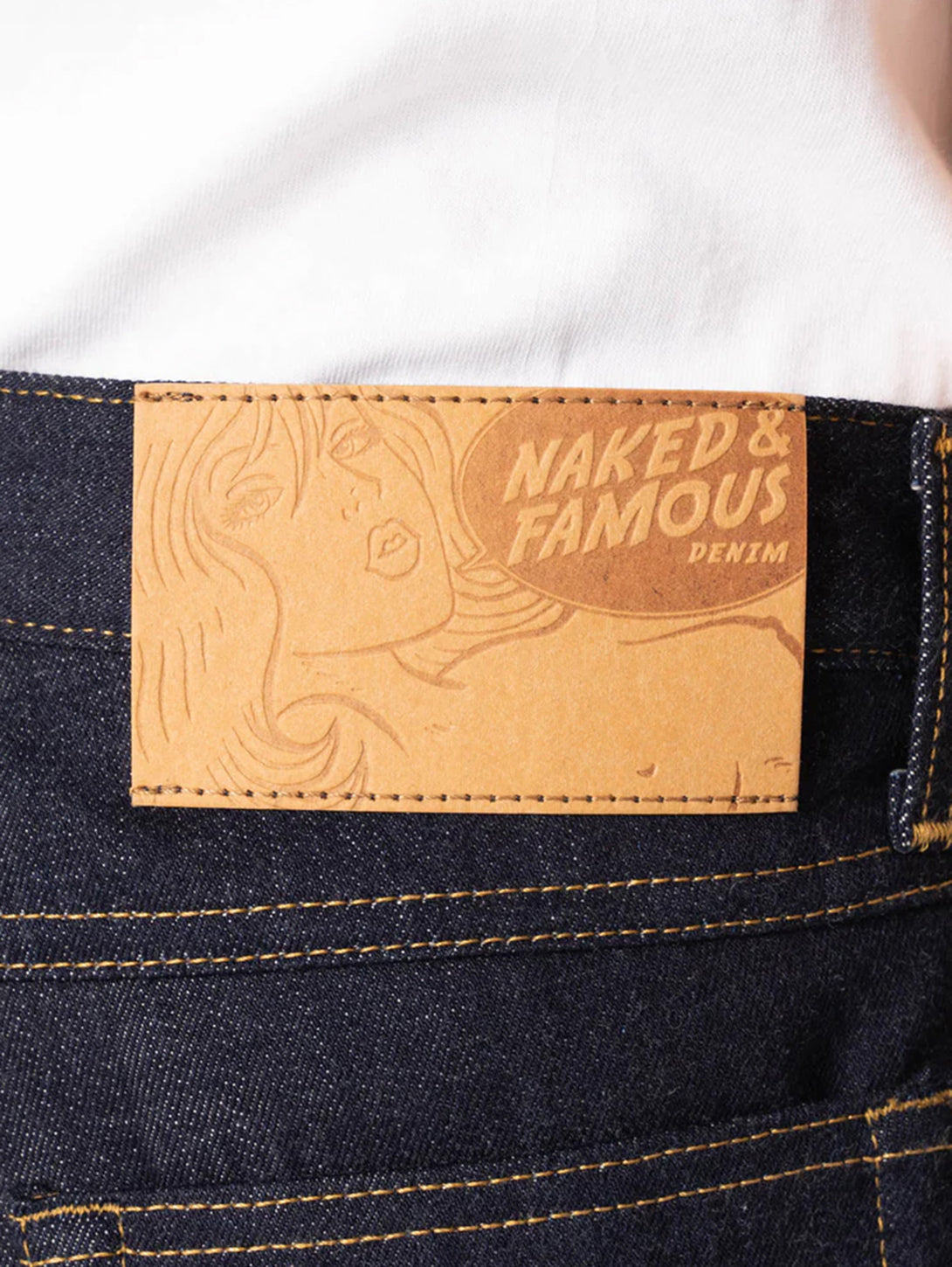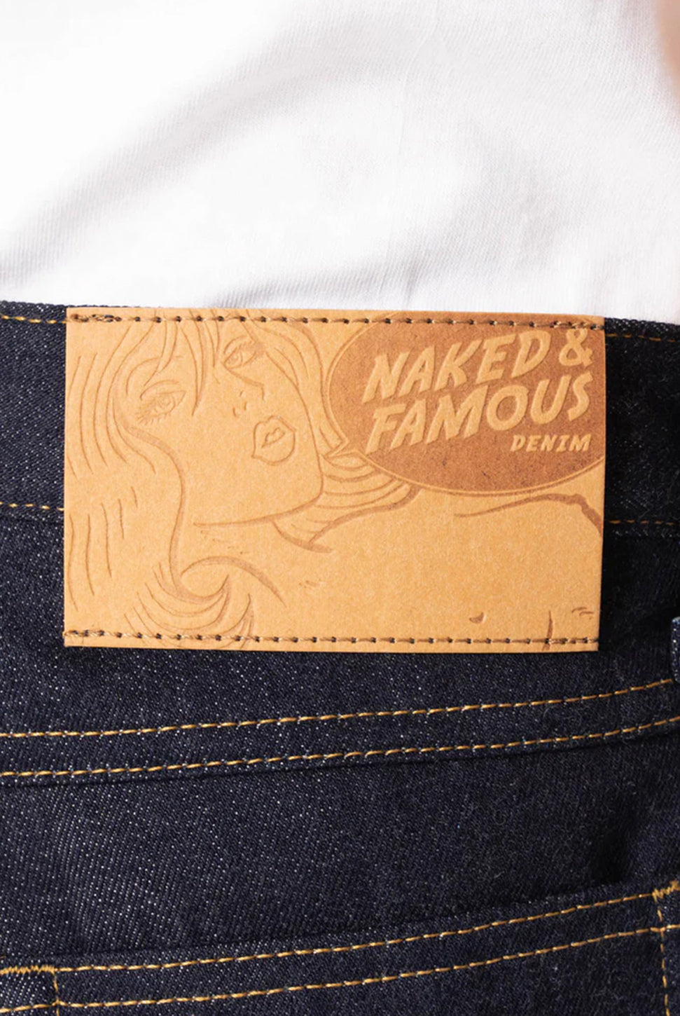 The brand name Naked & Famous is a satire of our celeb-obsessed culture. They aim to poke fun at “Hollywood” and “Glamour” brands that sell jeans for $300 and up solely because they are celebrity endorsed, and not because they are higher quality.