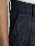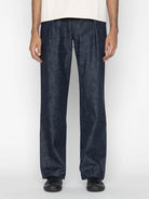 The 10oz Rinsed Denim is a lightweight Japanese selvedge denim, pre-rinsed for a softer feel and easier break-in. Clean and minimal, it's ideal for everyday wear. Finishing details include tonal stitching, a navy leather patch, and antique copper hardware.