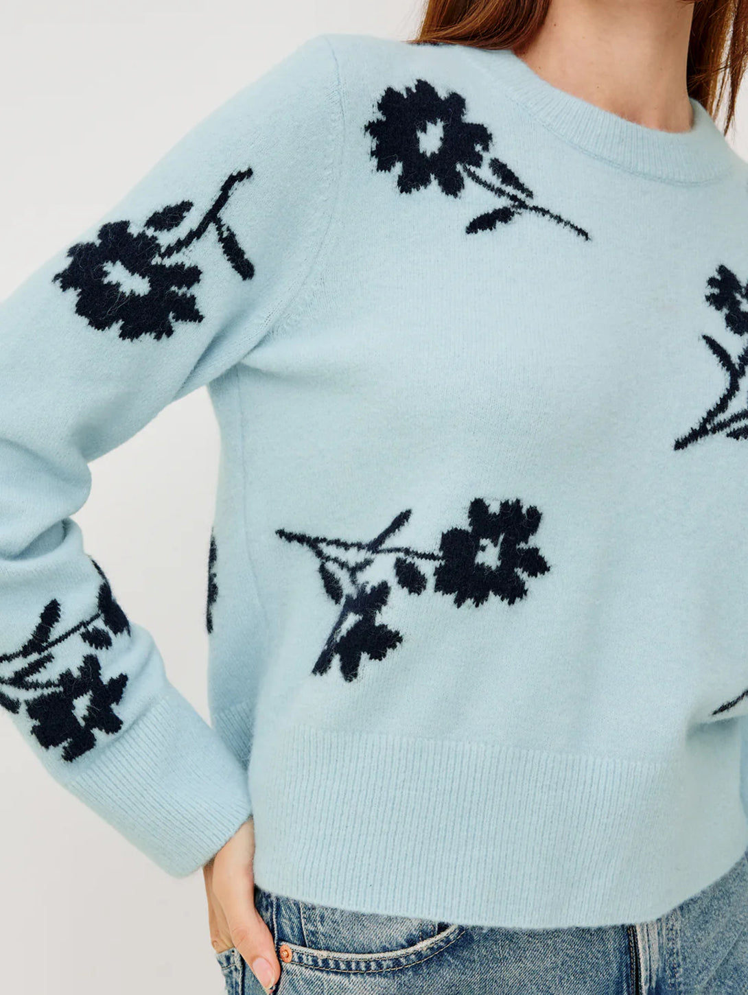 Long Sleeve Print Distressed Crew Sweater - Purple
