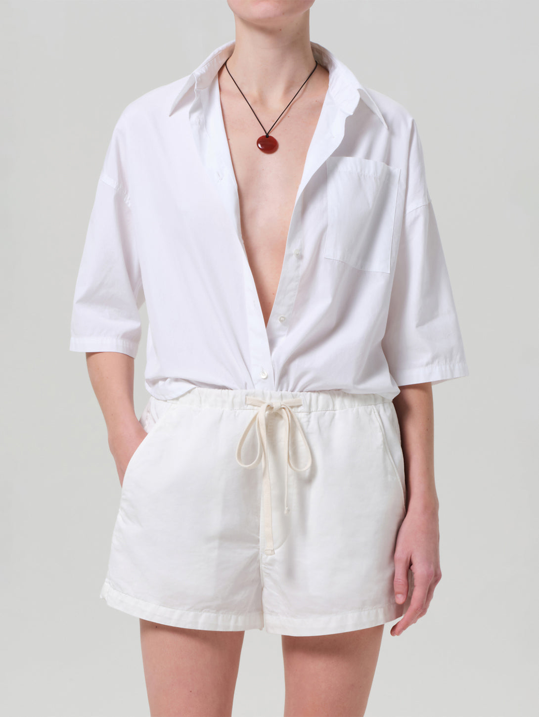 The Francis Cropped Cape Button-Up offers a fresh take on the classic button-down. Crafted from 100% cotton, it features expertly placed seam details for a close, accentuating fit. The cropped silhouette adds a modern twist, making it the perfect piece to pair with high-waisted denim or a sleek skirt for an effortlessly elevated look.