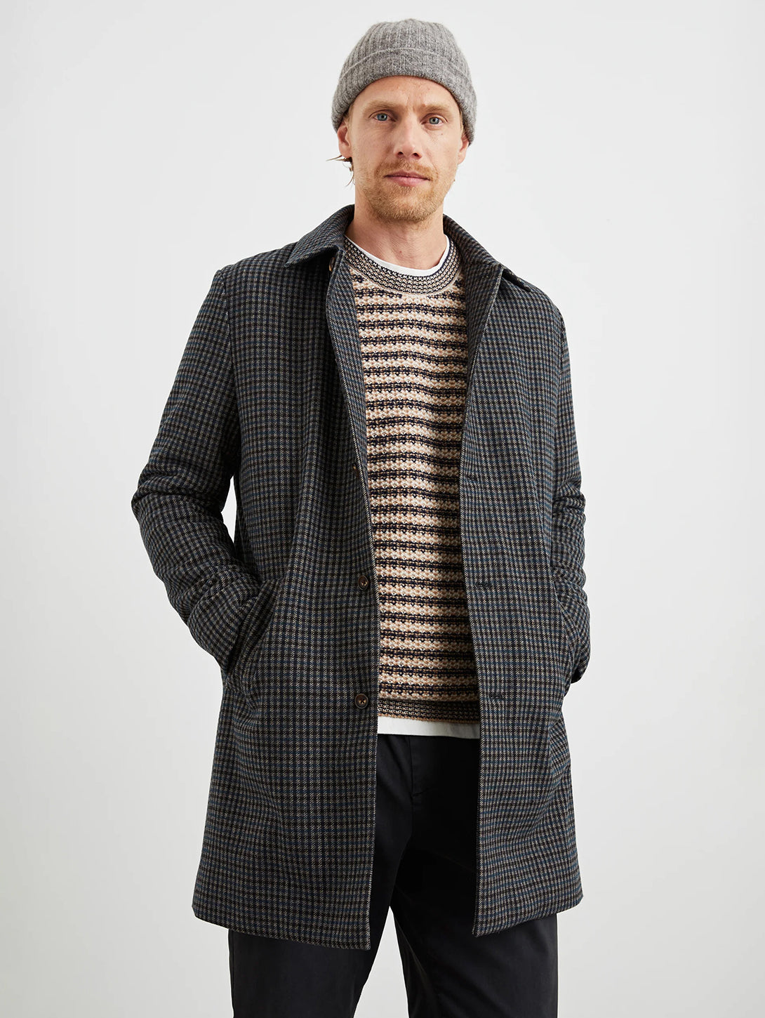Our answer to Mcintosh, the Hockney is a traditional top coat with all the trimmings. Wool-blended and lined with welt pockets, interior pockets on both sides (invisible zipper and welt), and a back vent, this wardrobe building block delivers stylish practicality with every wear