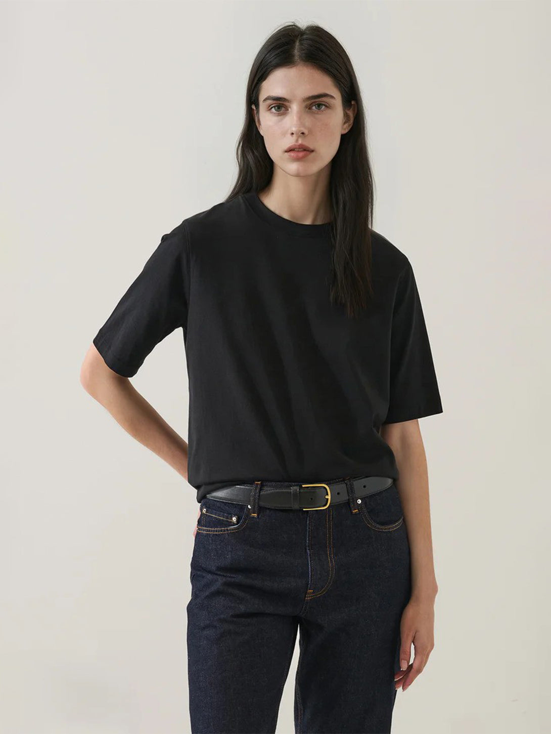 Crafted from a premium mercerized Pima cotton, this relaxed crew t-shirt offers softness, durability, and a subtle sheen. This style is designed in a modern silhouette featuring an elongated sleeve, high neckline and easy fit throughout the body.