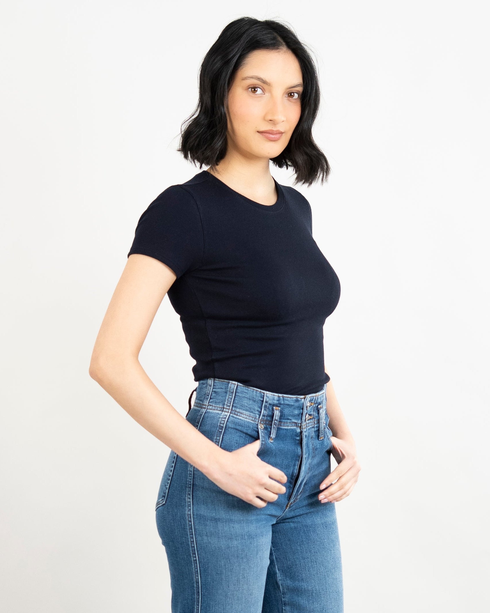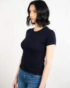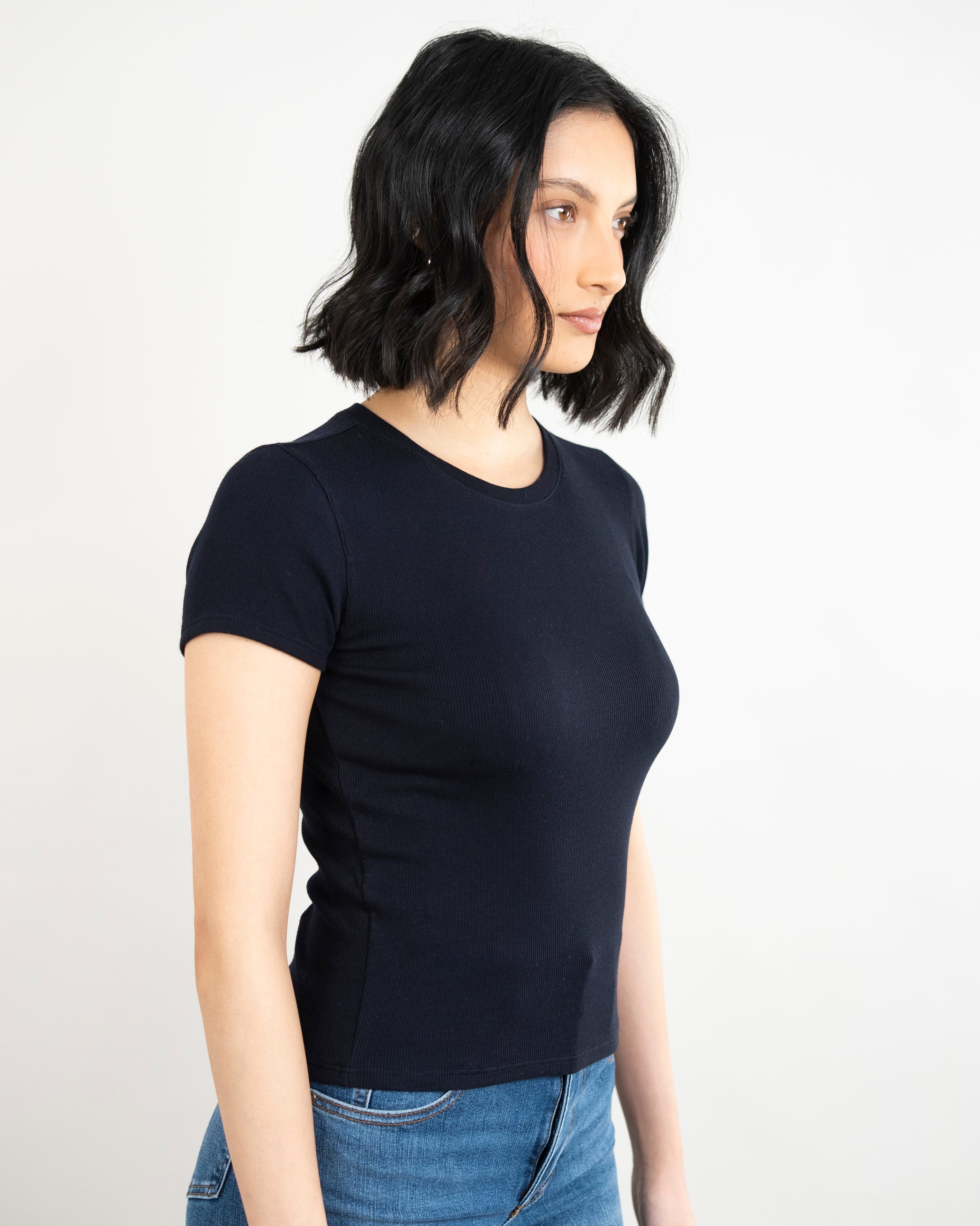 PA’s ribbed short sleeve baby t-shirt is crafted from a premium cotton modal fabric. Cut in a slim silhouette, this piece is a flattering wardrobe staple and can be styled on its own or layered under your favourite jacket.