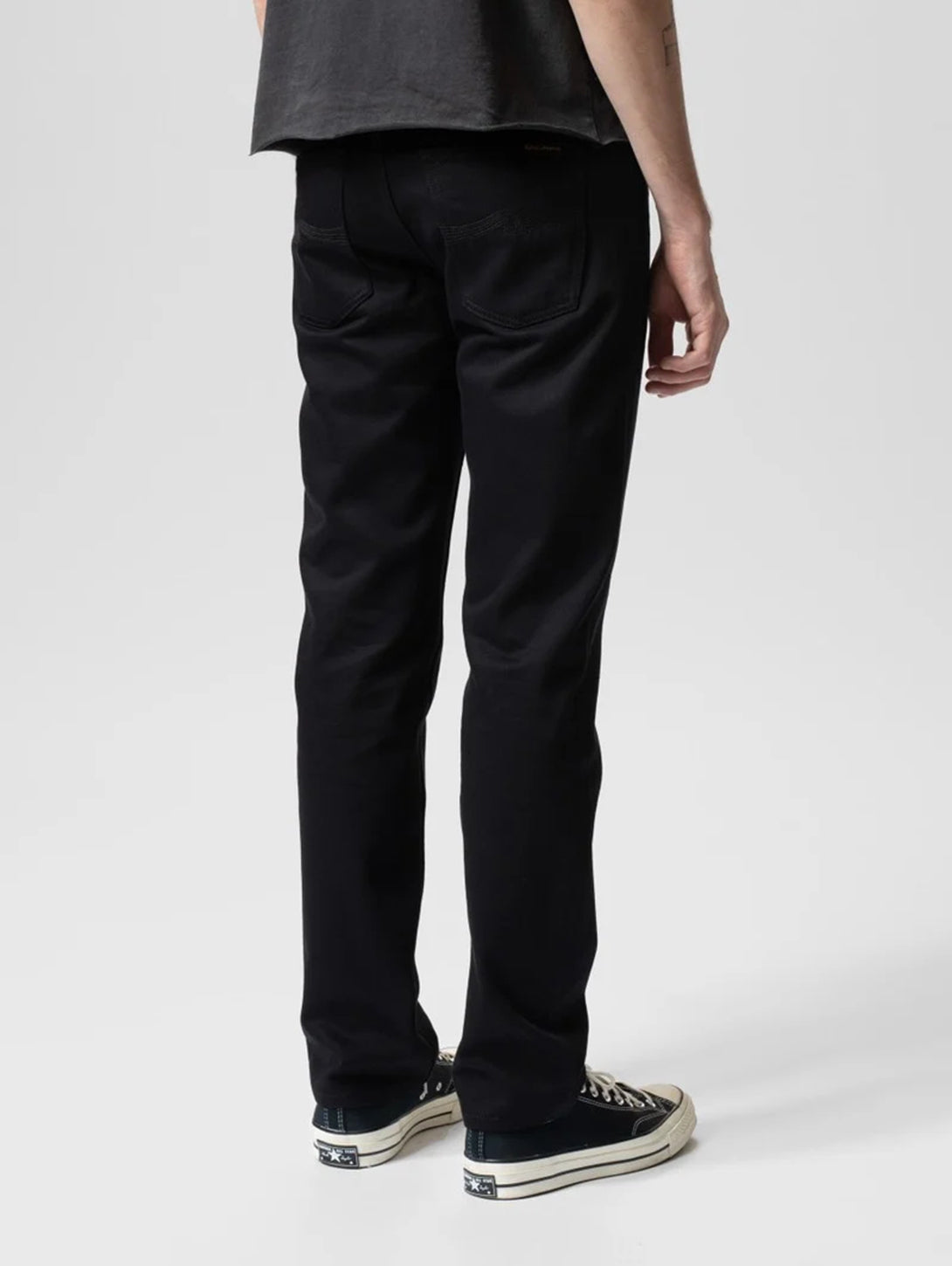 Regular fit jeans with a straight leg made in organic denim that stays black. Our Everblack fabric is made to maintain its color for as long as possible, withstanding 40, or more washes without any significant loss of color. To optimize the denim for the fit, these jeans have been rinsed, making the jeans stretchy and soft. If you are looking for a pair of pitch-black jeans that do not fade this is the way to go.