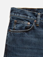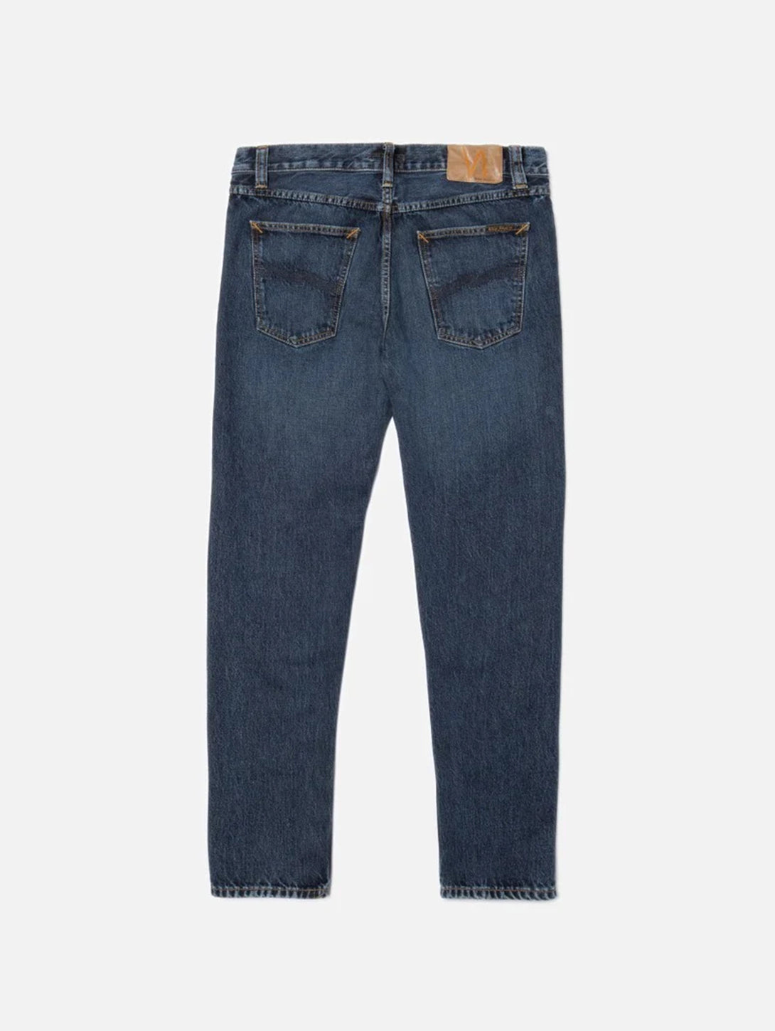 Regular-fit jeans with a tapered leg made in a dark blue wash with subtle wear. Although dark, these jeans got it all. They span an impressive array of indigo hues - from the darkest of the dark to muted bright blue highlights. Abraded areas add softness while the unabraded ones add a rugged marble texture.