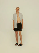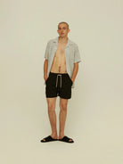 The Black Linen shorts are tailored from a breezy blend of linen and cotton to a straight silhouette with a mid-rise fit that sits just below the waist. Style details include multiple pockets and a comfortable drawstring waistband. Perfect for smart-casual summer outings.