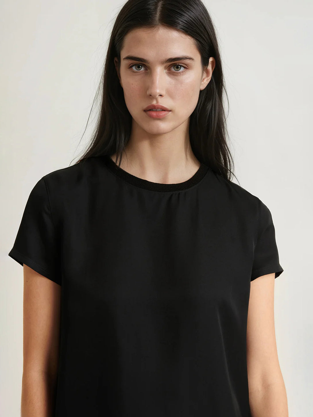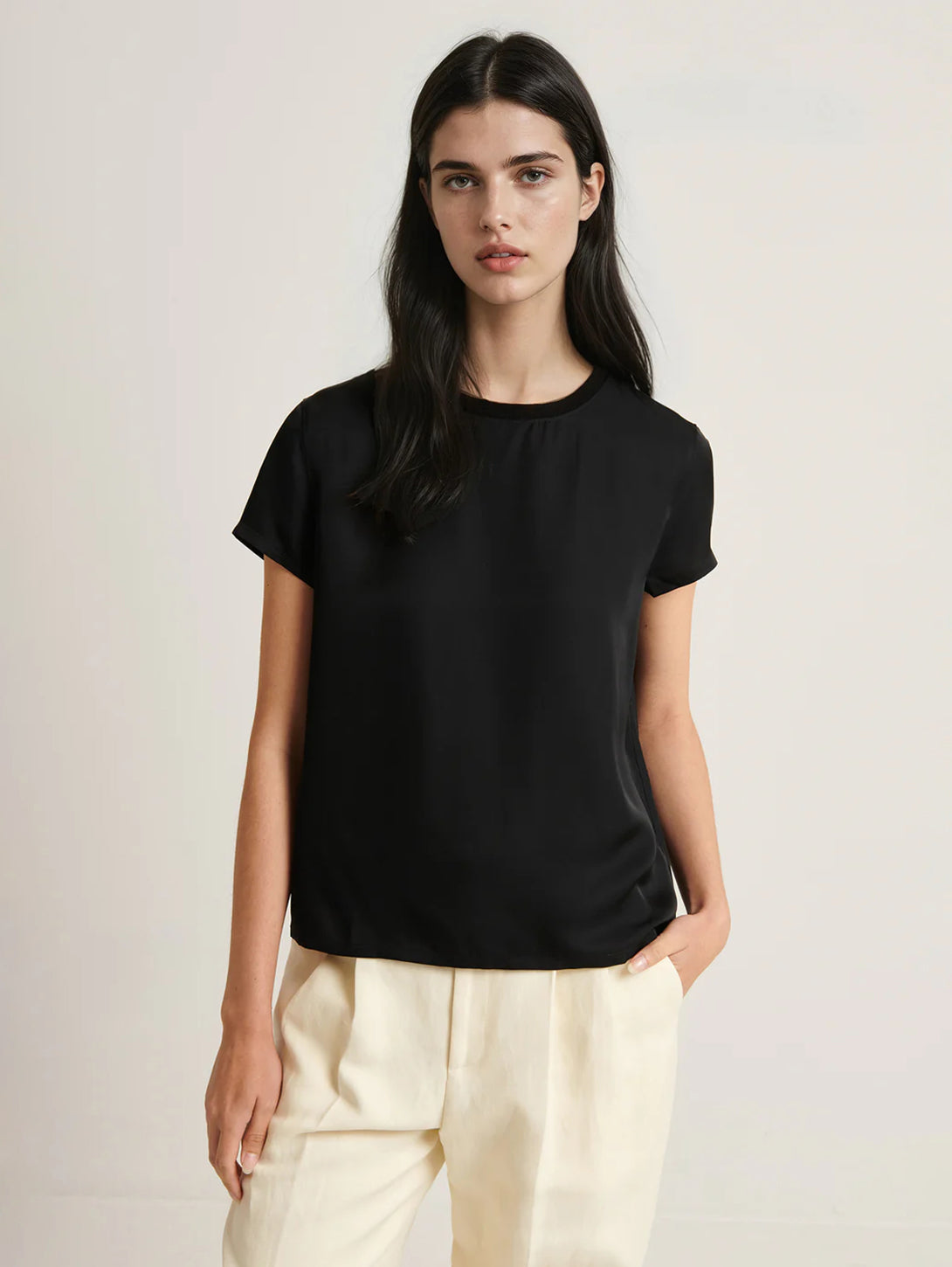 Patrick Assaraf’s slim silk t-shirt is crafted from a premium quality mid-weight 100% silk fabric and was inspired by our best-selling t-shirt silhouette. It is cut in a relaxed fit featuring a true shoulder and feminine ribbed neck trim.