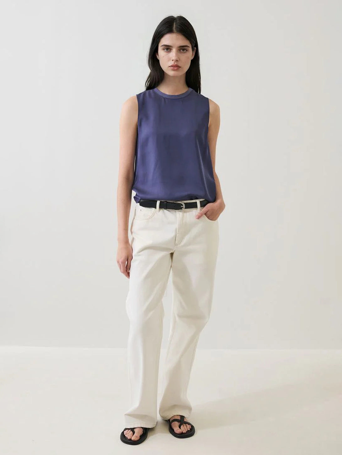 PA’s silk tank top is made from our premium quality silk fabrication and is cut in a flattering easy fit through the body. This piece is undergarment friendly and is an ideal layering piece year round.