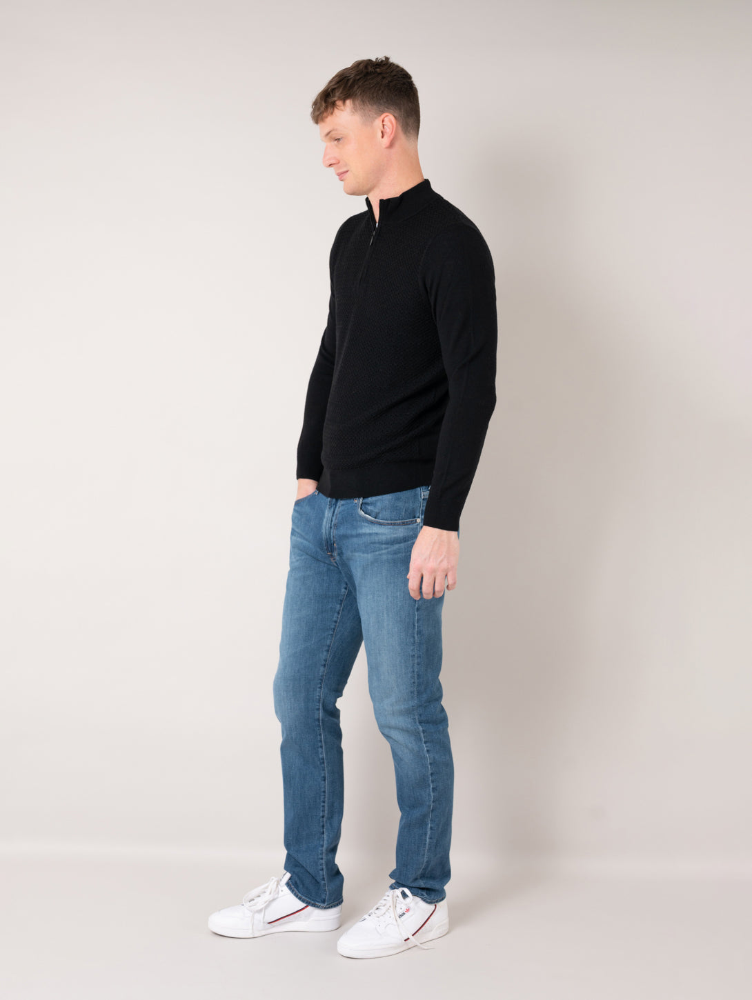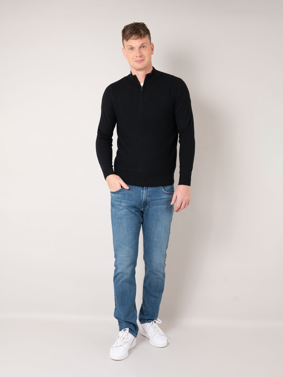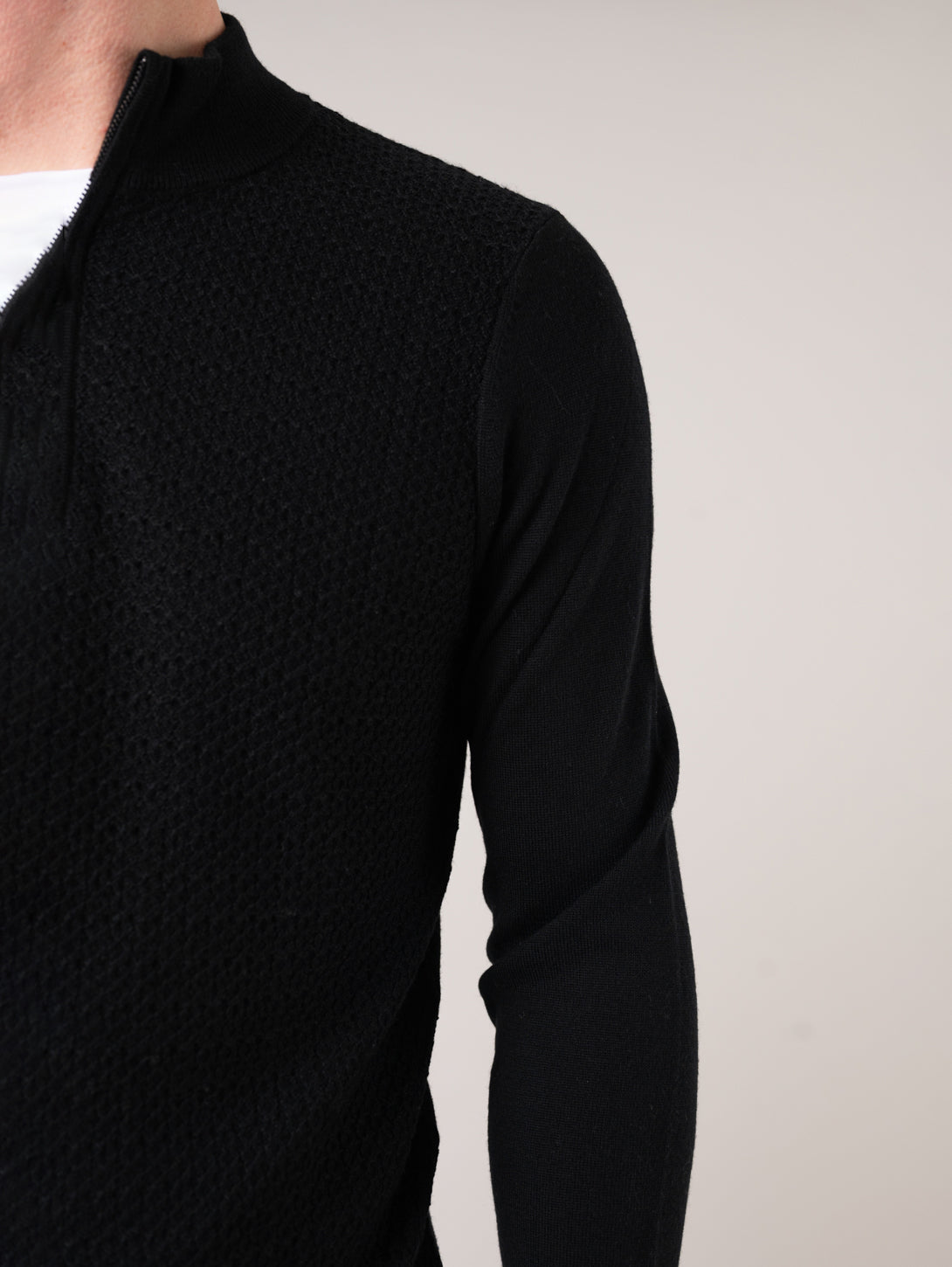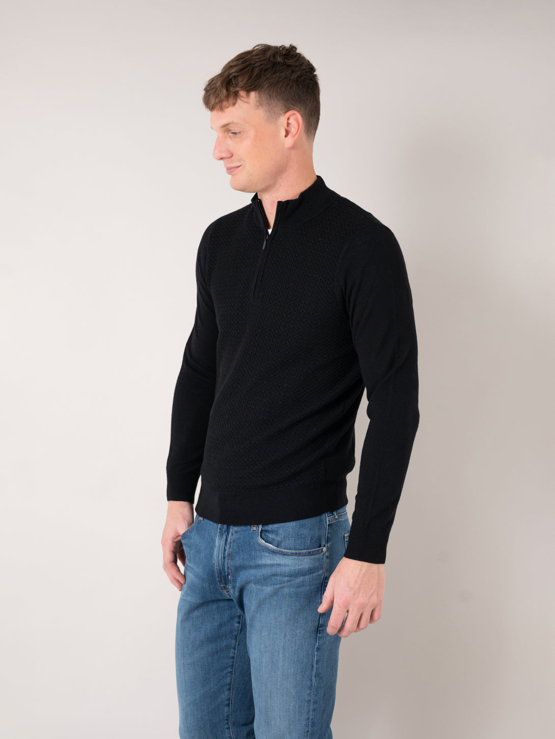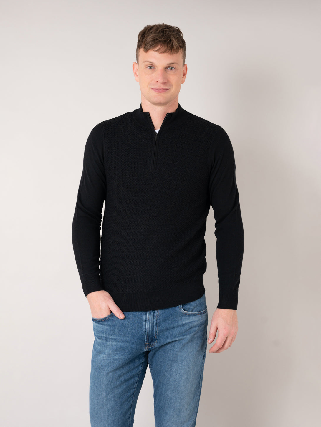 Discover the perfect blend of luxury and versatility with our Merino Textured Quarter Zip. Crafted from 100% extra fine merino wool, this elevated essential features a subtle honeycomb-textured front that brings depth and modern sophistication to the classic mock neck silhouette. A piece designed for both polished layering and standalone style.